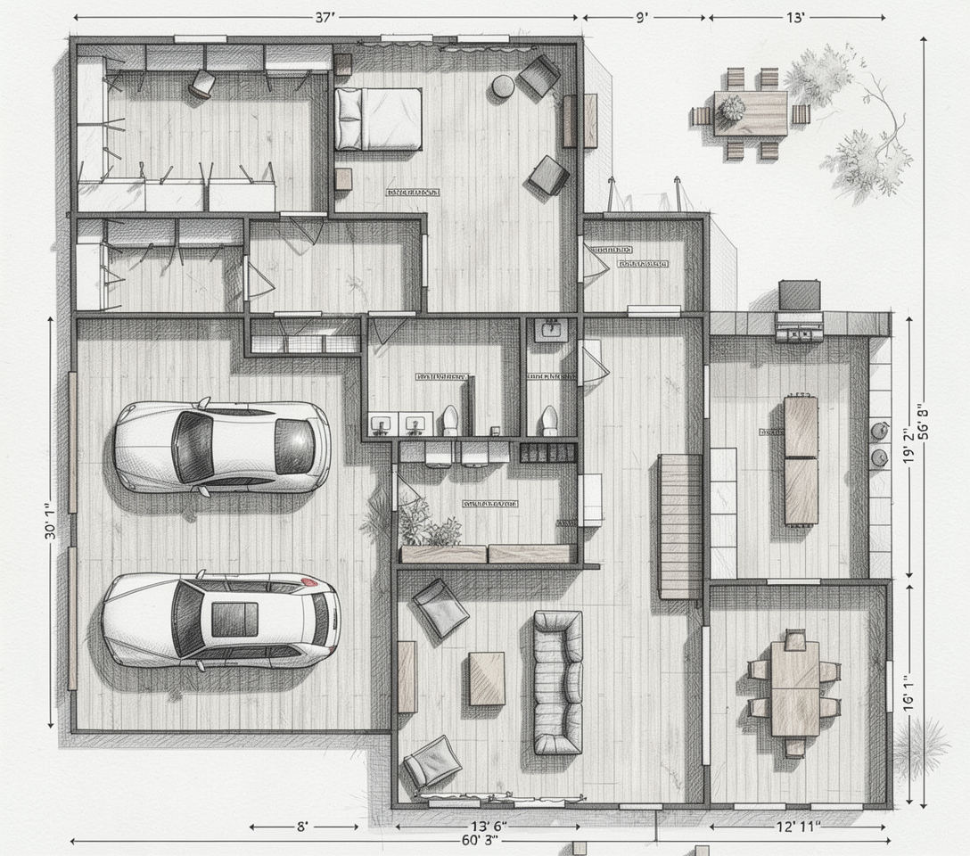 update this floor plan to look more like an architectural sketch drawing