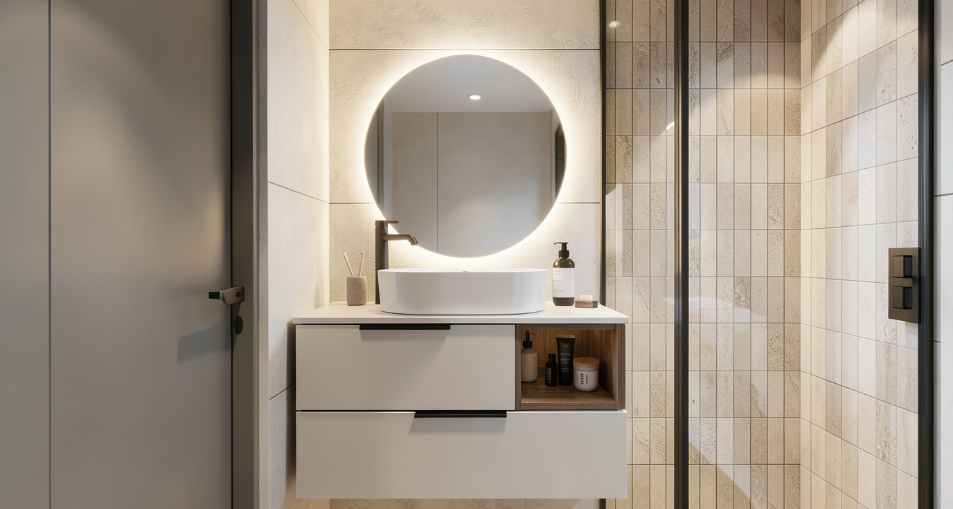 pon los azulejos de la ducha blancos no ilumines tanto el espejo