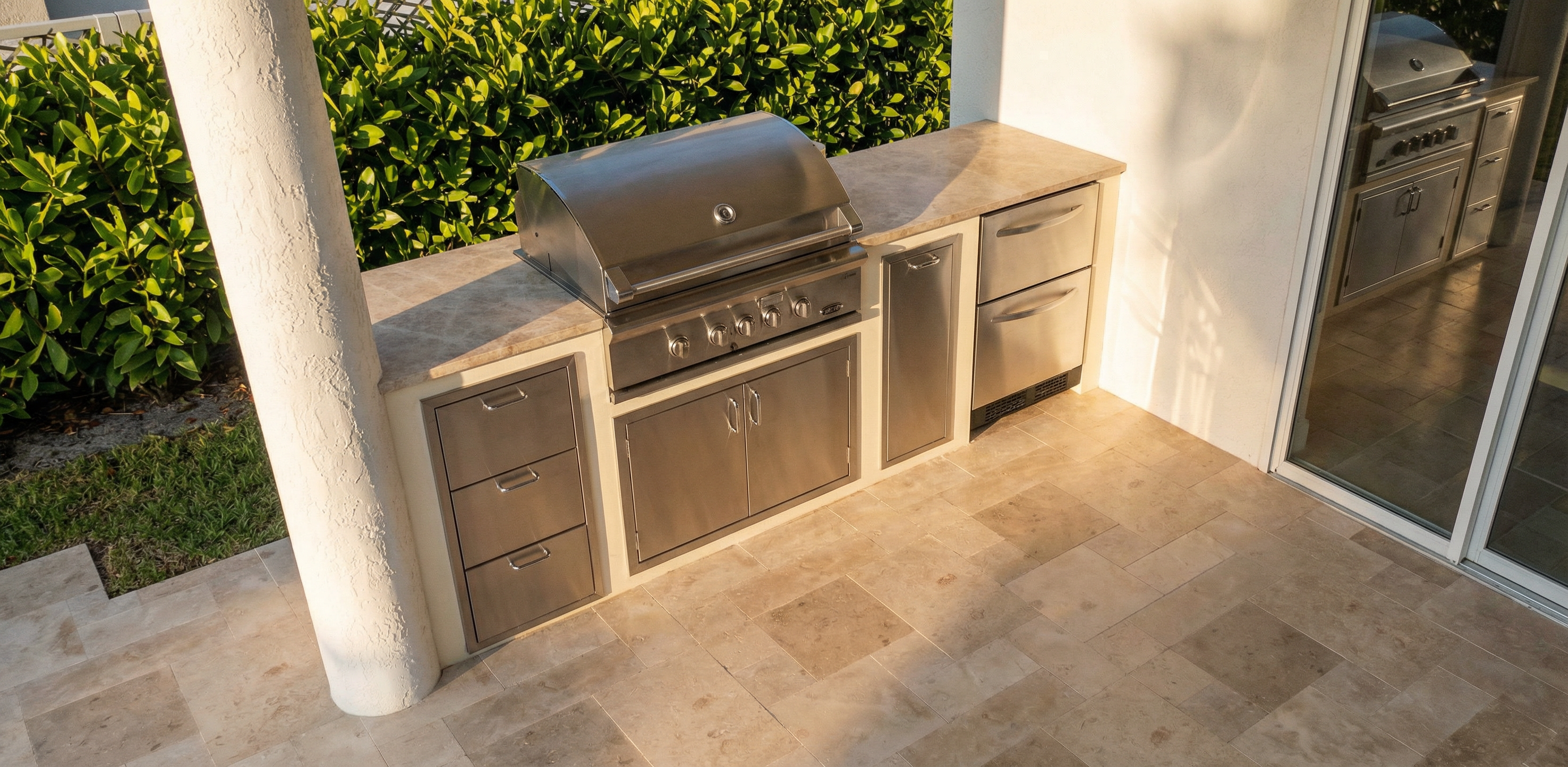 blue sky pine trees in background driveway fine pebbled aggregate