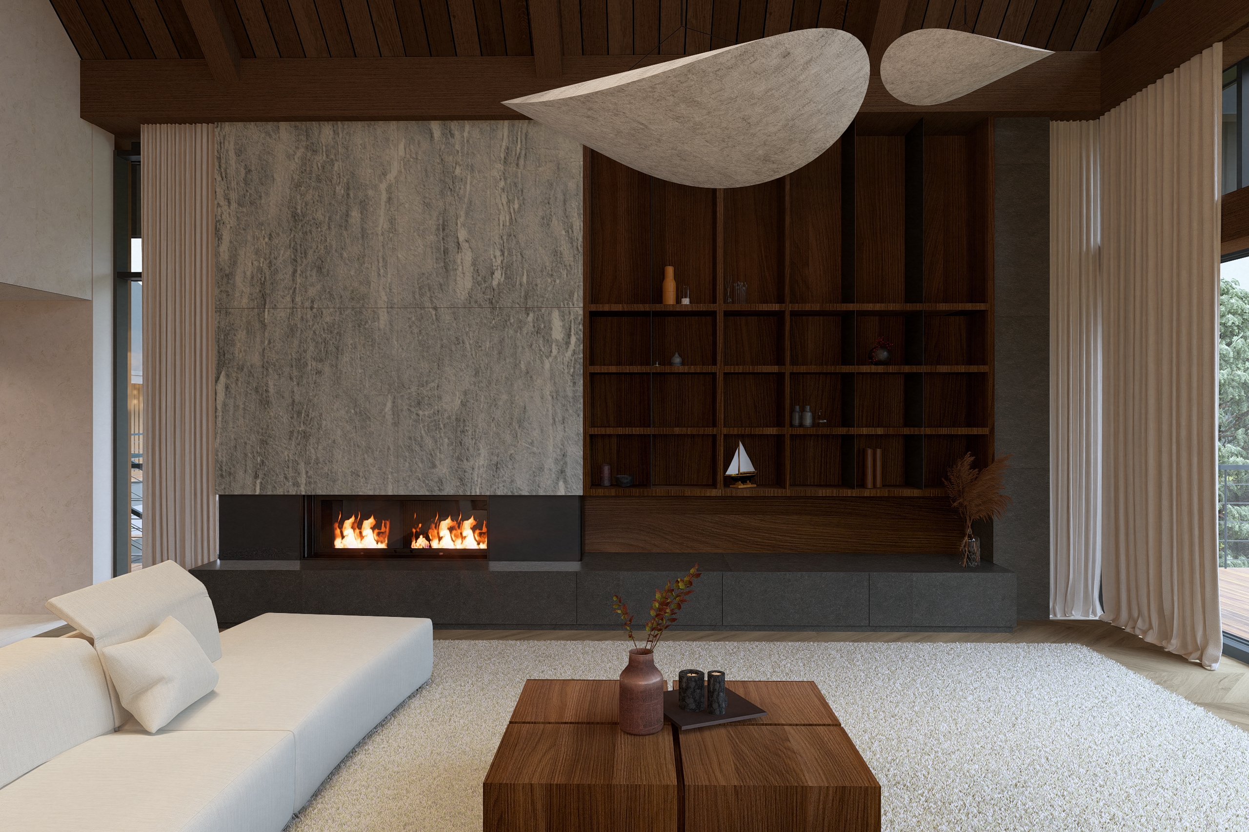 add some linear led lighting to wooden rack on the wall insert a 85 inch led tv on the wall