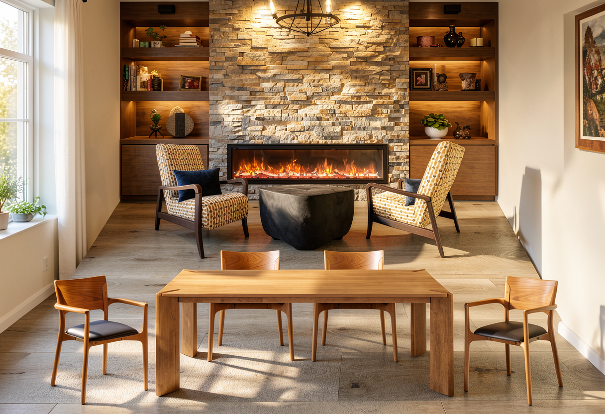 change the soffit color to be a brown charcoal color and change the light wood finish to be a darker walnut remove the grid lines from the front door so that it is all glass leave the column above the stone the color it is now make the soffit and fascia and frieze color a mix between brown and charcoal leave the columns the color they are now make the ceiling wood less red and more just dark brown siding darken the soffit facia and frieze a little bit leave everything else the same now add a hanging black lantern pendant centered in the peak of the vaulted part above the door make the lantern a little bigger now keep everything but make the ceiling the wood the same color as the soffit and fascia make it not wood make it a flat siding material go back the last