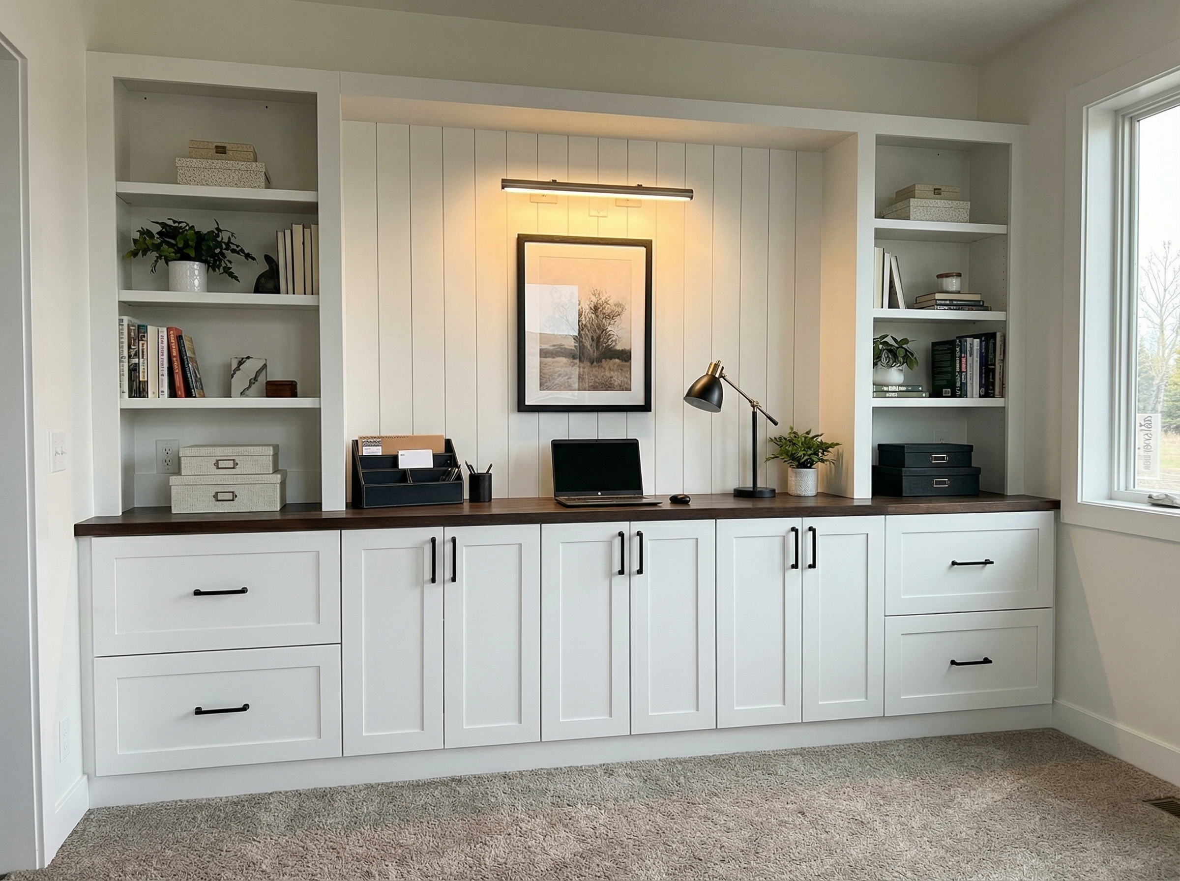 flat linen textured glass wall on the right glows softly filtered view through sheer window shades linear light at top of cove bolsters on sofa are charcoal