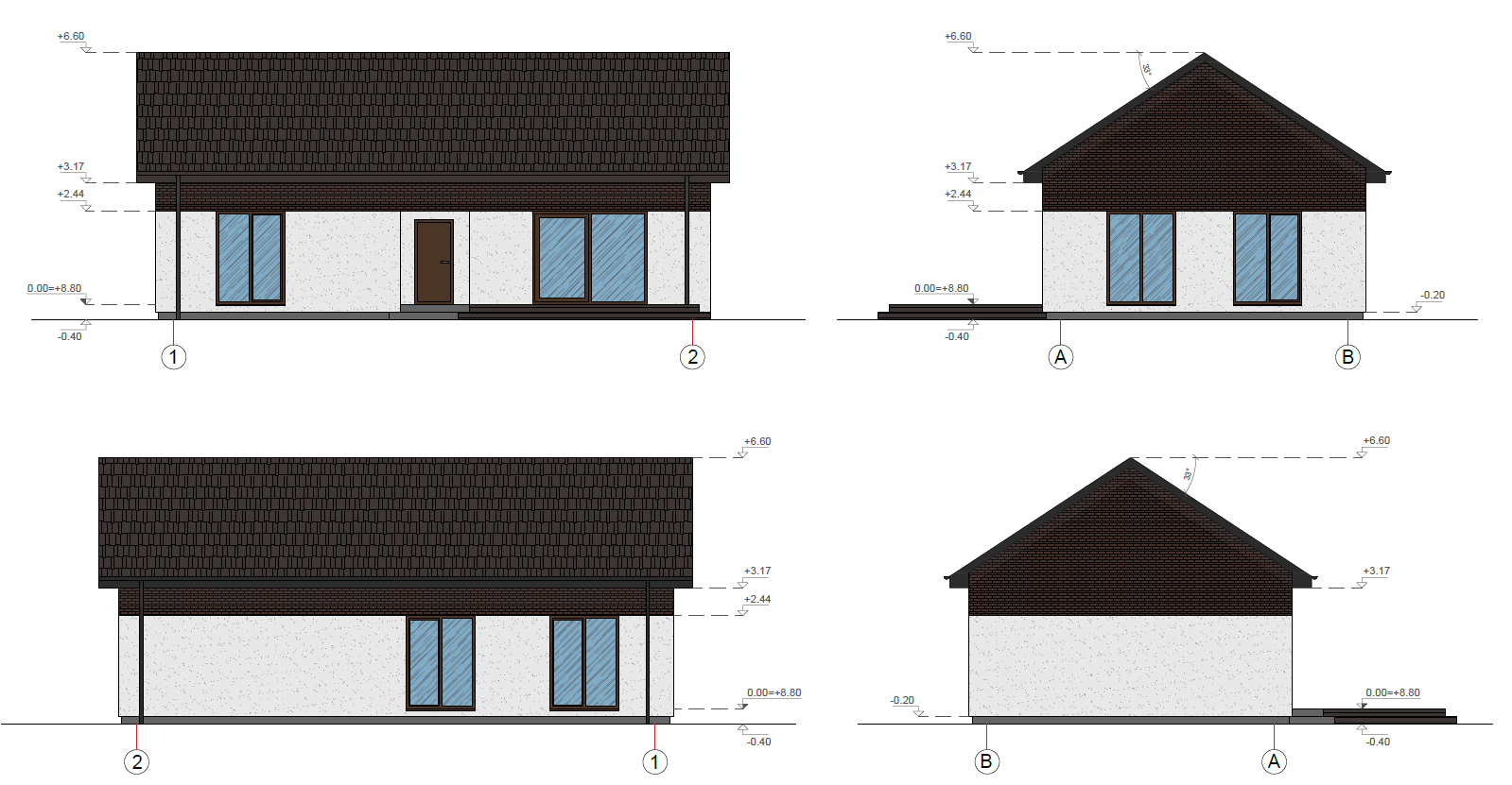 make photrealistic 3d visualisations from 4 fasades provided