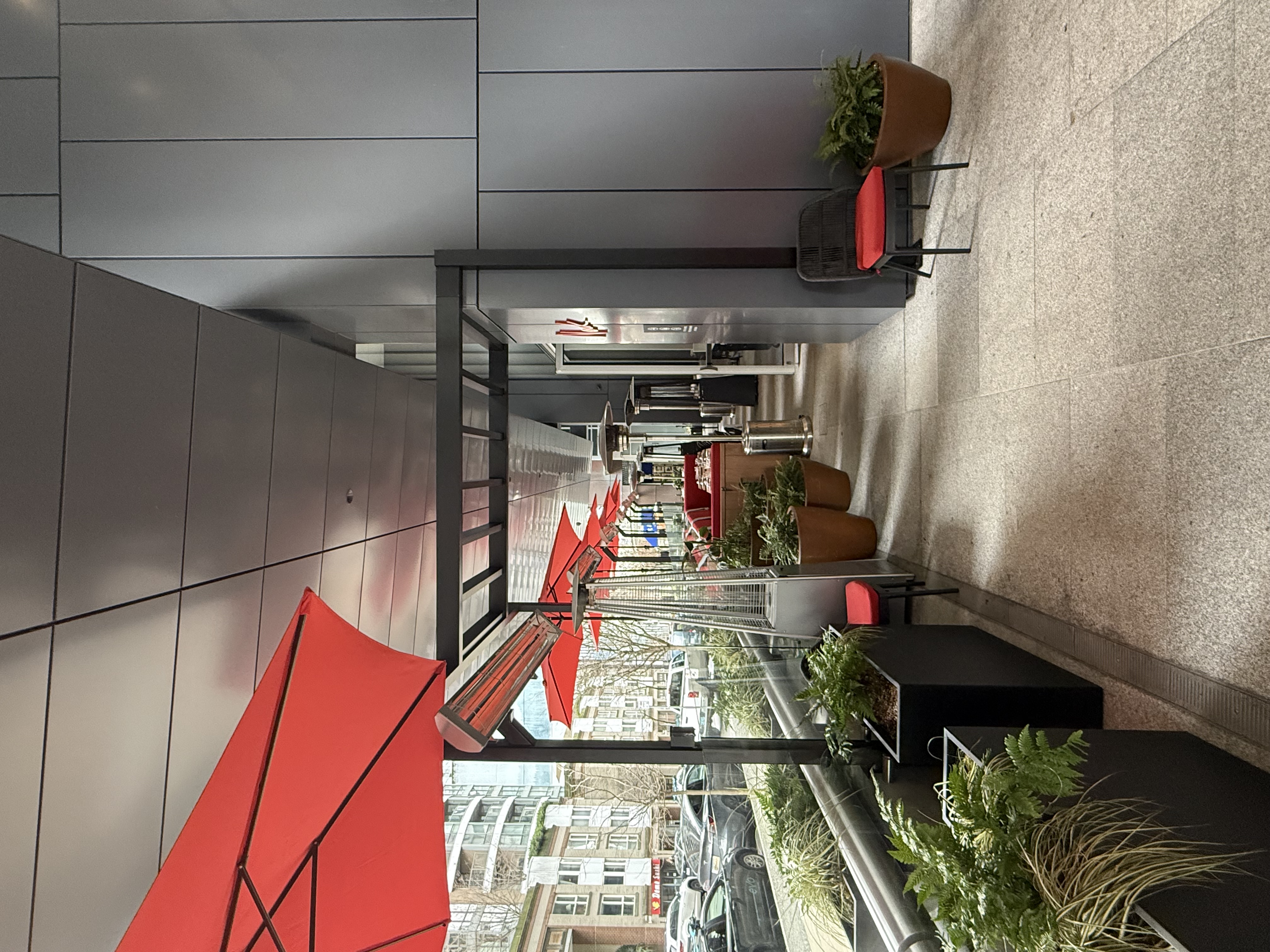 add nook restaurant logo sign illuminated to the black overhead beams for this walkway and change wall sign to illuminated version