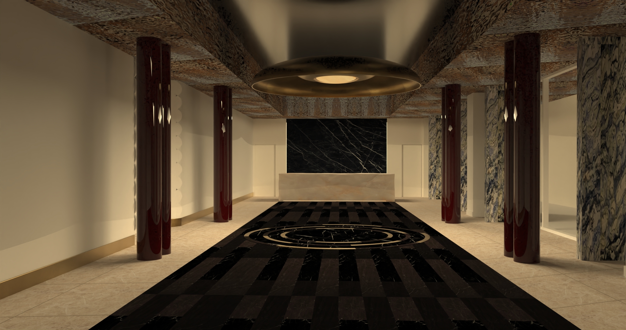 more ambient and moody should feel dramatic and edgy in terms of mood lighting and quality of space but making sure there is ample light as it is a hotel lobby space