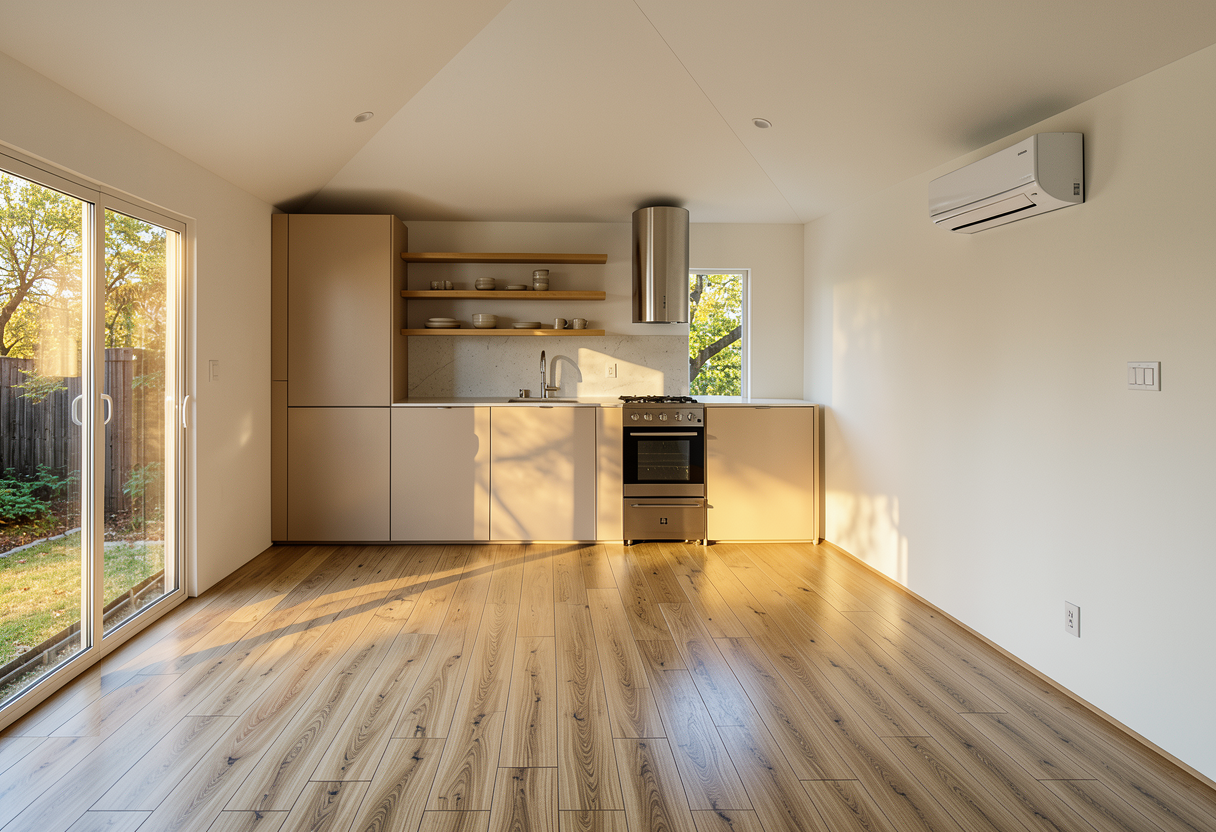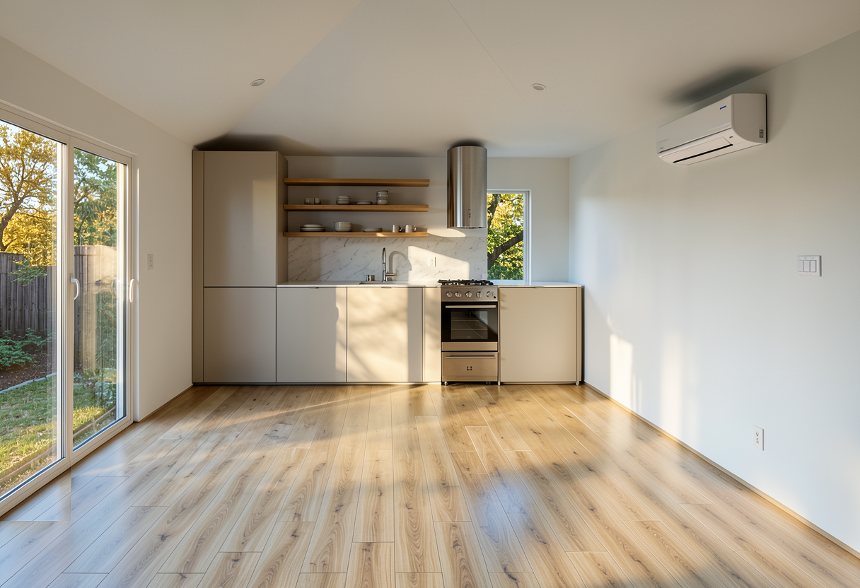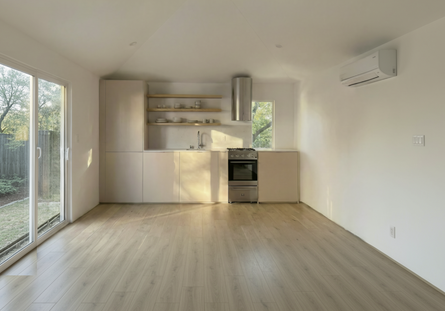 make floors natural white oak cover ac unit in slats with a large wall mounted tv underneath