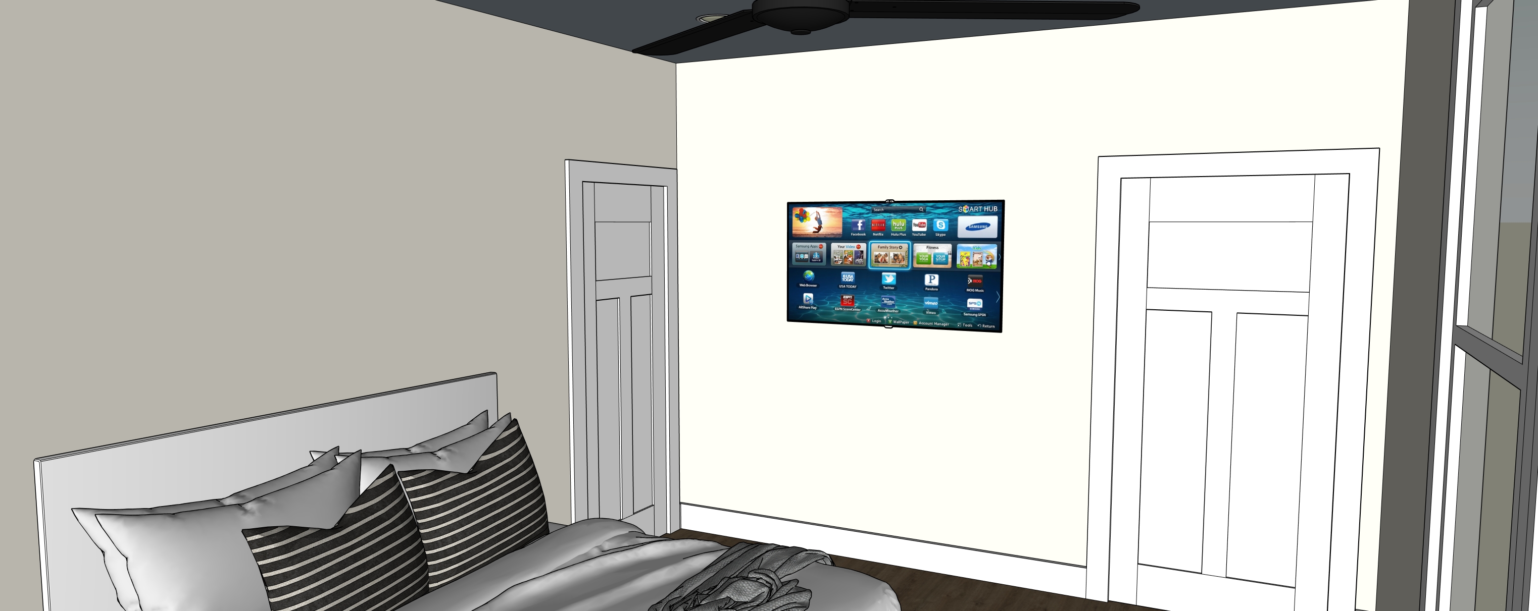 sherwin williams alabaster wall paint add decor add artwork above bed wooded lot outside of window tv on wall