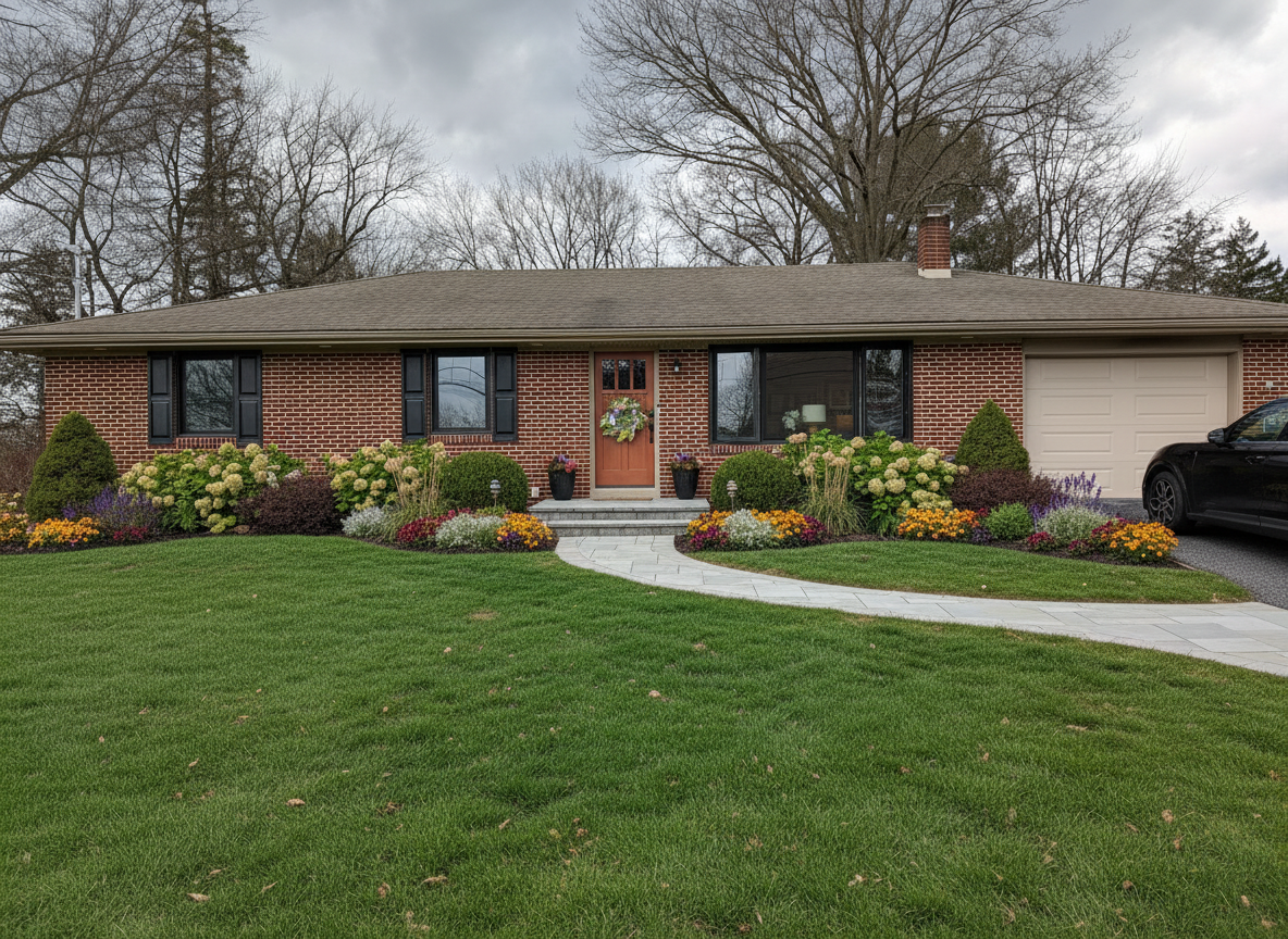 remove the grass between the sidewalk and far right flower bed closest to the driveway and use that space to make the sidewalk wider