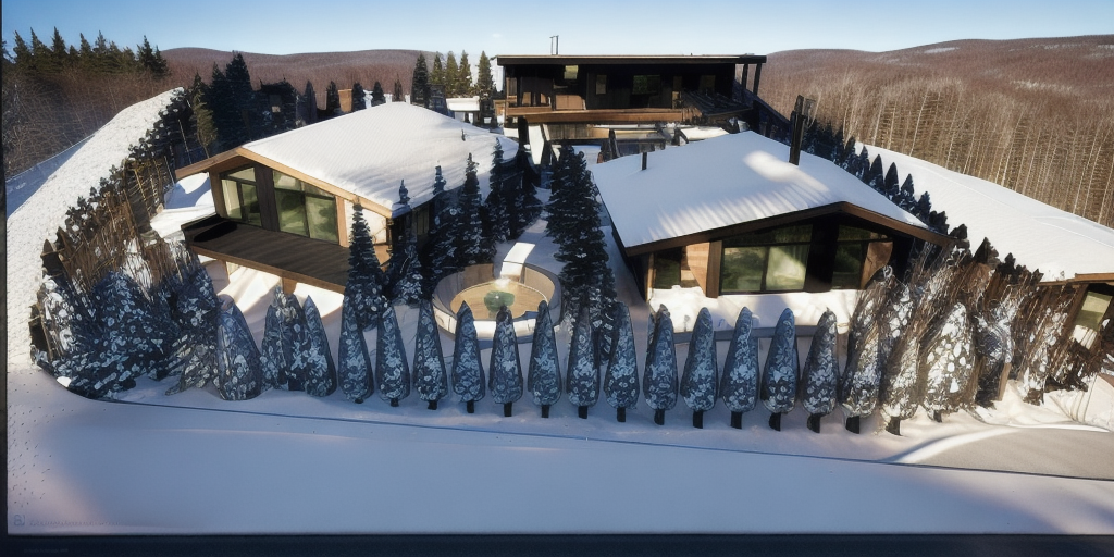 modern exterior shot houses in a forest in mountain sunny morning black metal roof black windows black doors wood accent and dark wooden finishes architecture