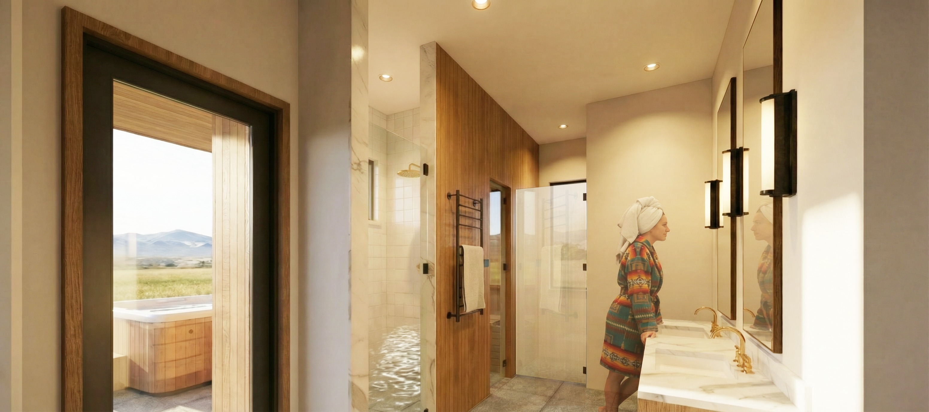 everything stays the same in the view except swap the vanity lights out with kohler lighting components 18 tall led bathroom sconce