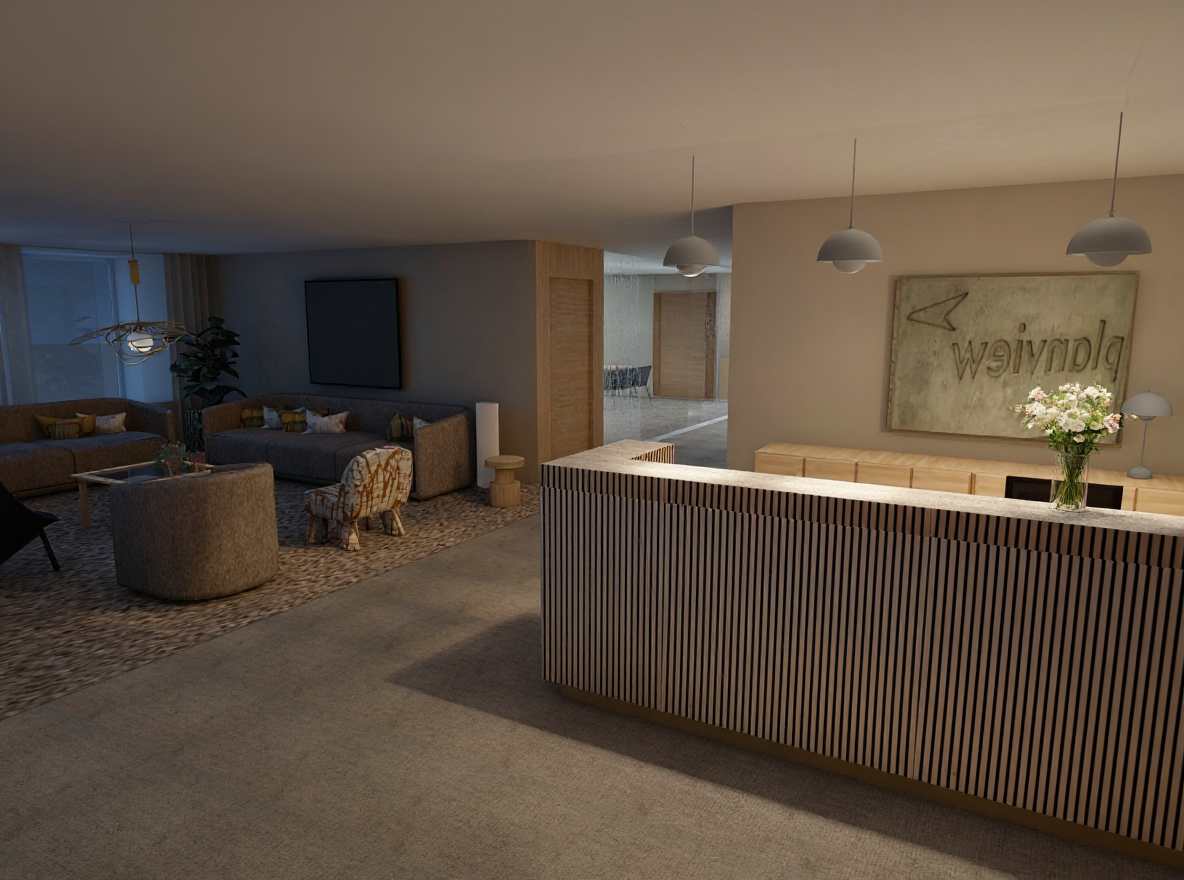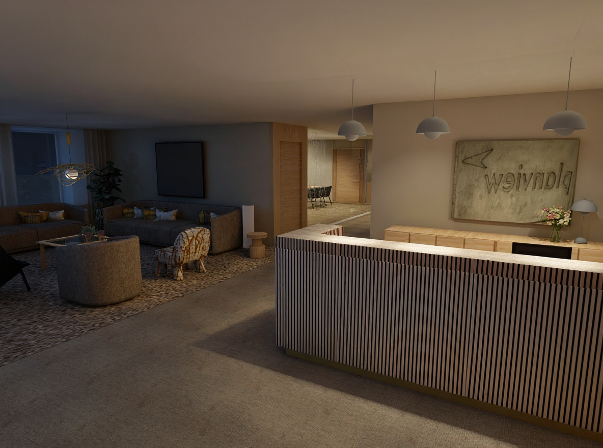 good but light up the lounge woith more light please place a thin translusent beige cirtain along the glass wall in the back inside the room good maybe even more artificial ligh in the lounge