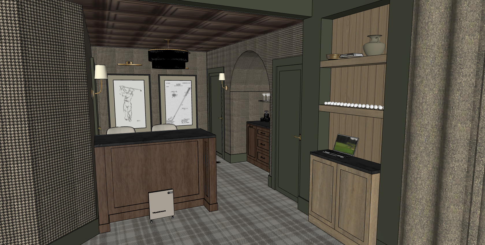 keep all coloring and structures add a warm glow to the lights create an led strip around the inset to the right closest to us make cabinet to the right a neutral light wood tone