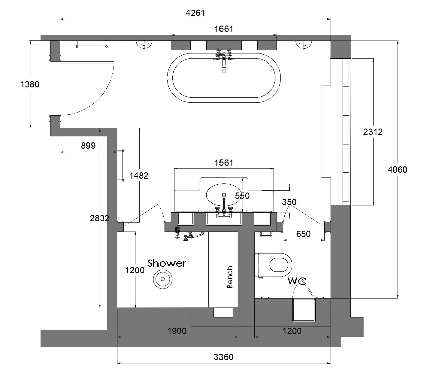 create 3d model top view for the bathroom ceiling height 2300mm do not show dimensions