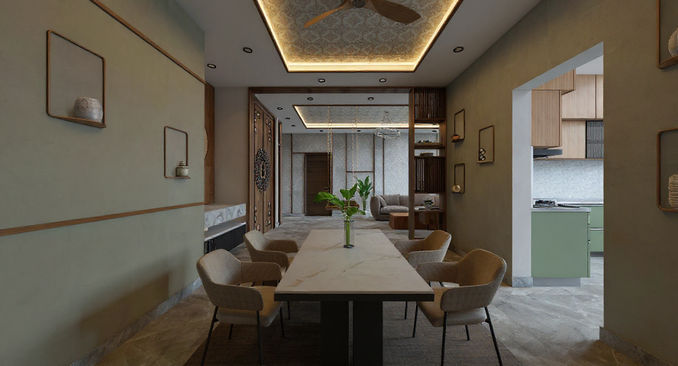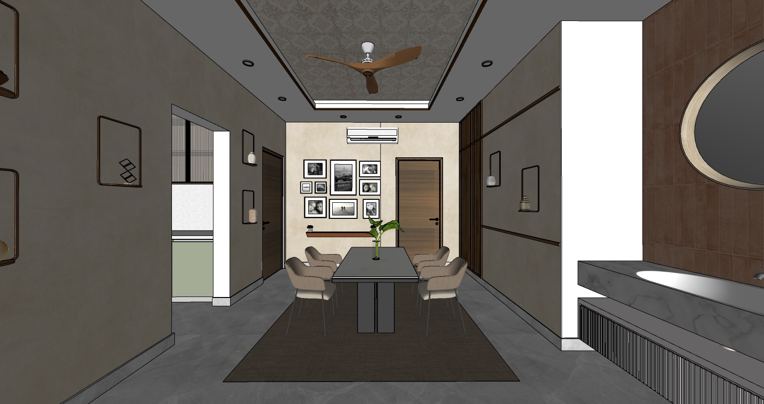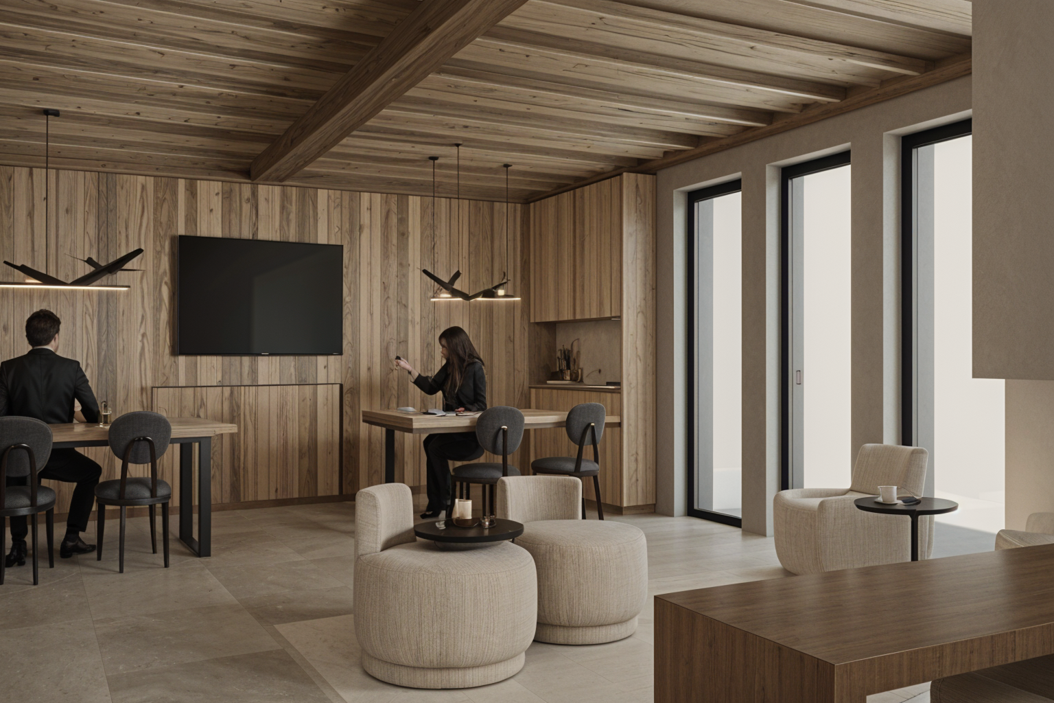 create a realistic interior render showcasing the existing furniture and flooring with their original textures preserved exactly as provided integrate cove lighting within the ceiling to produce a soft ambient glow that enhances the overall atmosphere ensure the ceiling cove lights are realistically illuminated casting appropriate shadows and reflections on surrounding surfaces maintain accurate material properties for all elements including fabric wood metal and flooring finishes to achieve a high fidelity photorealistic result adjust light intensity and color temperature for a balanced warm and natural lighting composition without overexposure