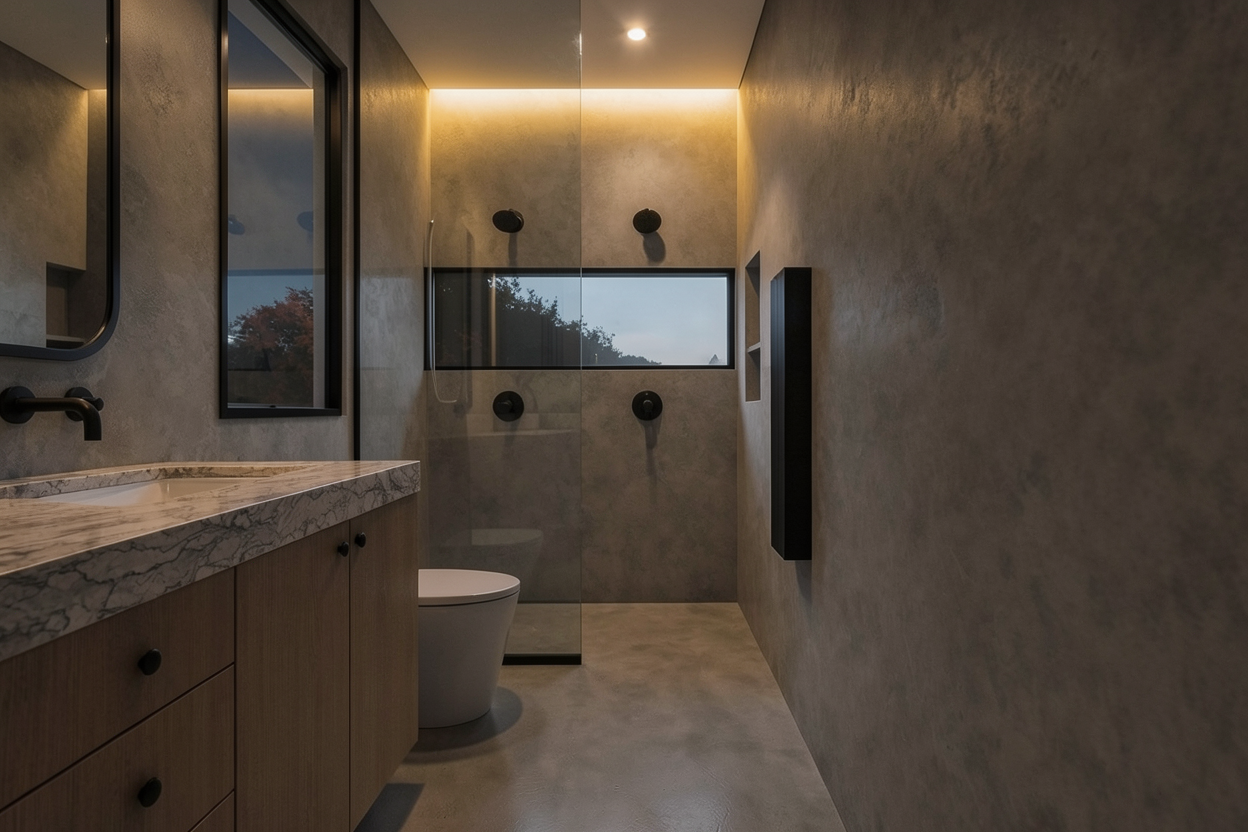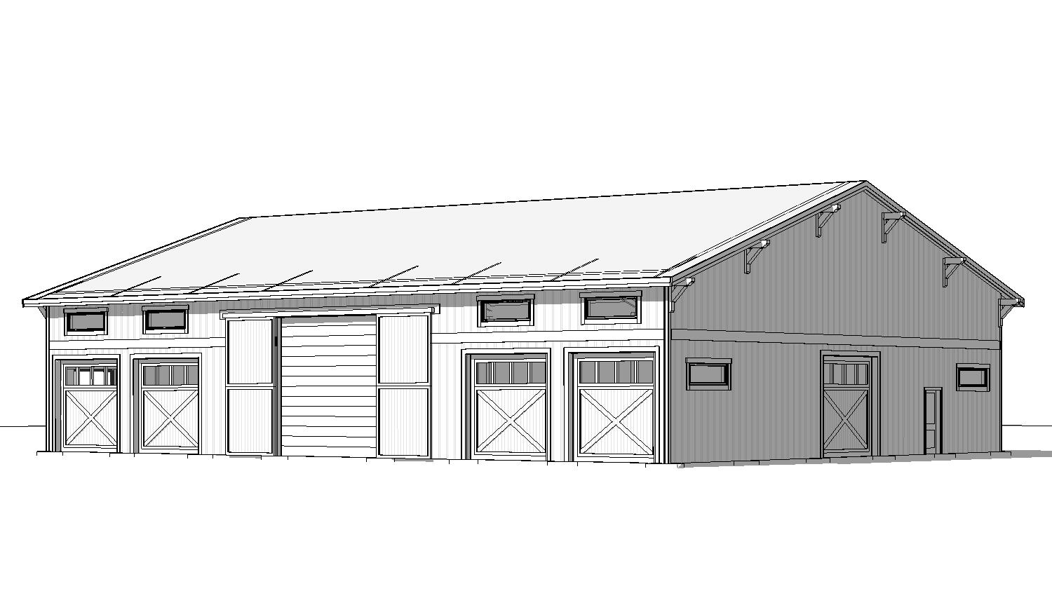 clean timber clad architectural garage exterior rendered in cinematic lighting beautiful oregon mountain landscape in the background wood garage doors asphalt driveway leading up to the building warm cedar board batten vertical wood siding with minimal grain pattern black standing seam metal roof visible lush forest landscape in the background natural wood textures high fidelity photorealistic visualization crisp shadow falloff refined facade geometry richly detailed grain patterns soft atmospheric depth premium architectural photography mood ultra clean composition and materials