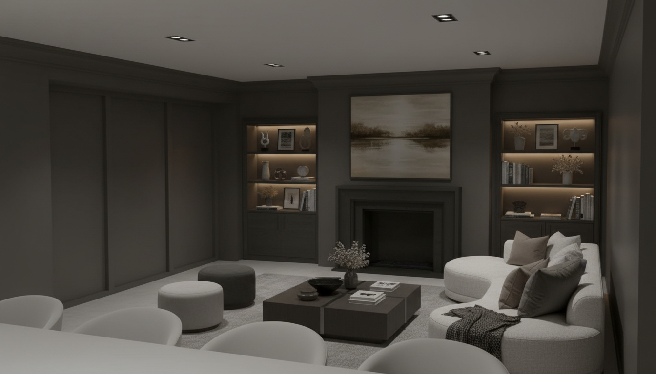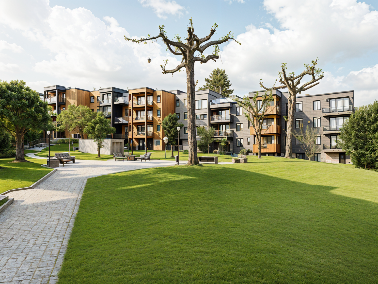 exterior shot make white facade with white stucco make brown element between windows with corten tiles add exterior furniture add ivy plants on the facade with net add interior add people enhance materials daylight environment keep geometry unchanged keep perspective unchanged