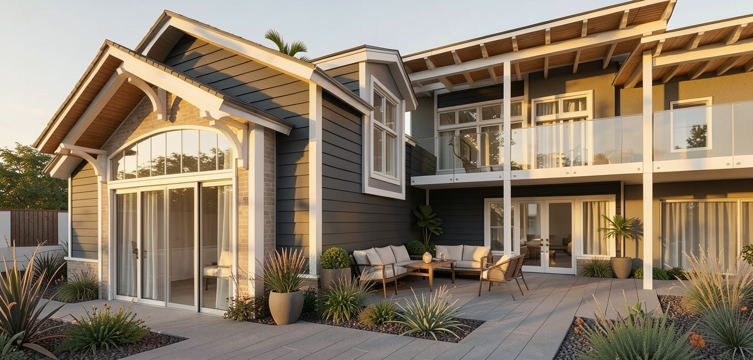 transform the provided interior image into a high end photorealistic render with warm golden hour atmosphere soft glowing highlights and relaxed upscale coastal energy while keeping everything exactly the same same proportions shape materials and same spatial configuration do not move or alter any objects geometry textures colors or furniture positions