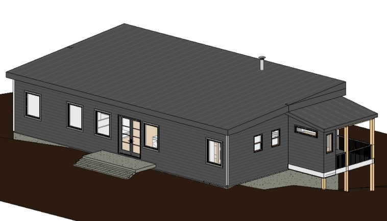 standing seam metal roof wrapped over thickened soffit fascia shou sugi ban japanese subtle grey siding clear glass