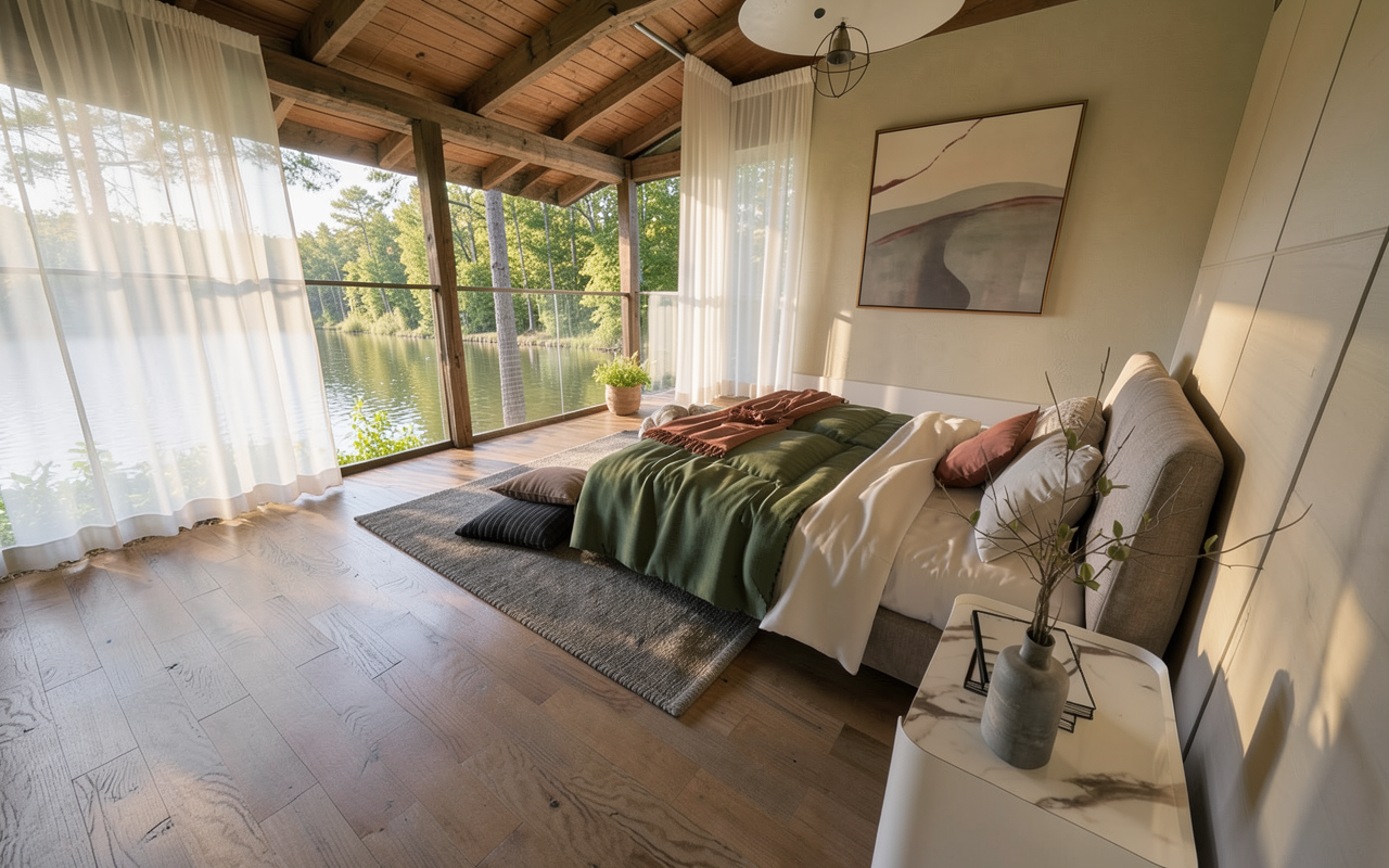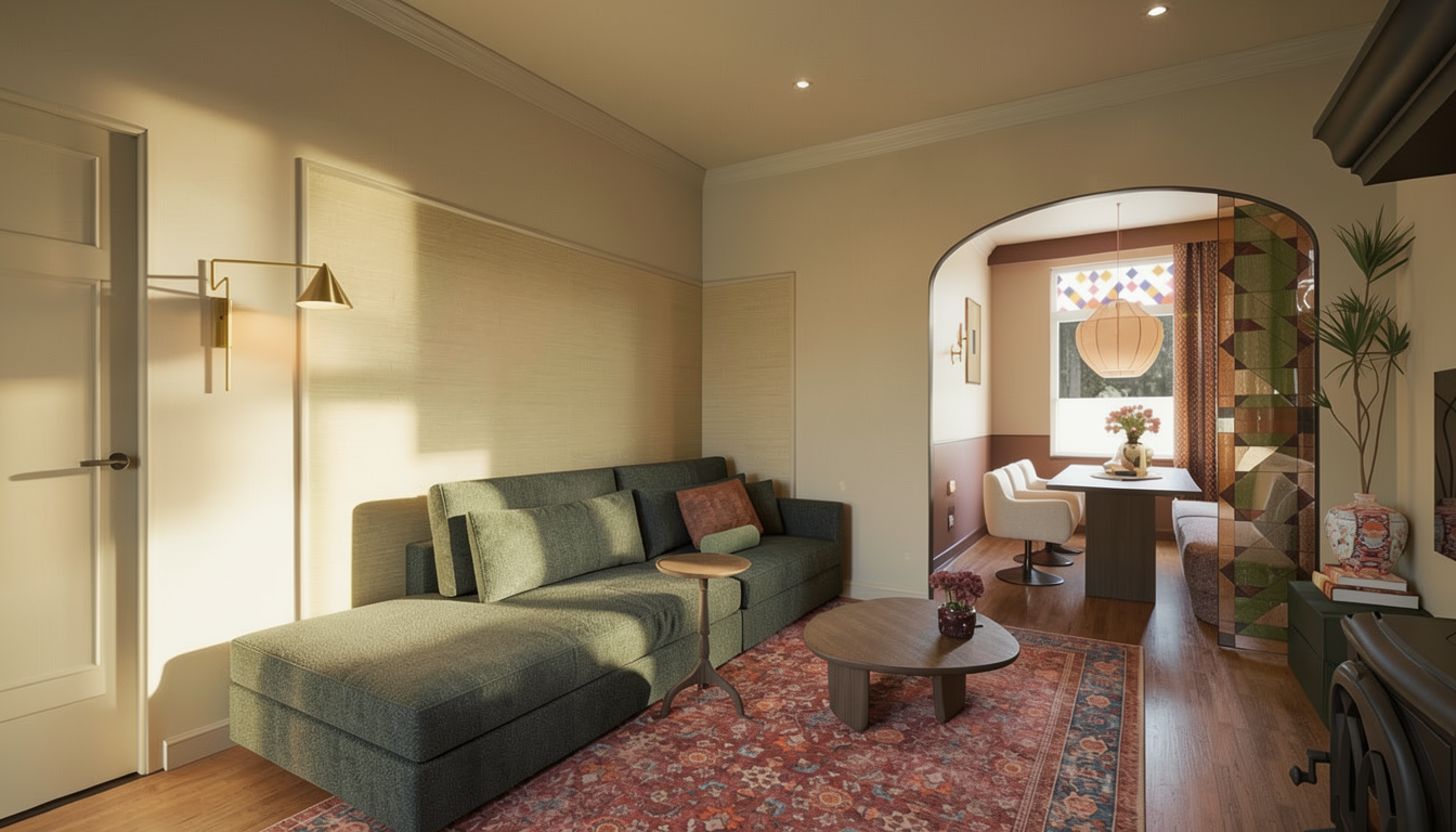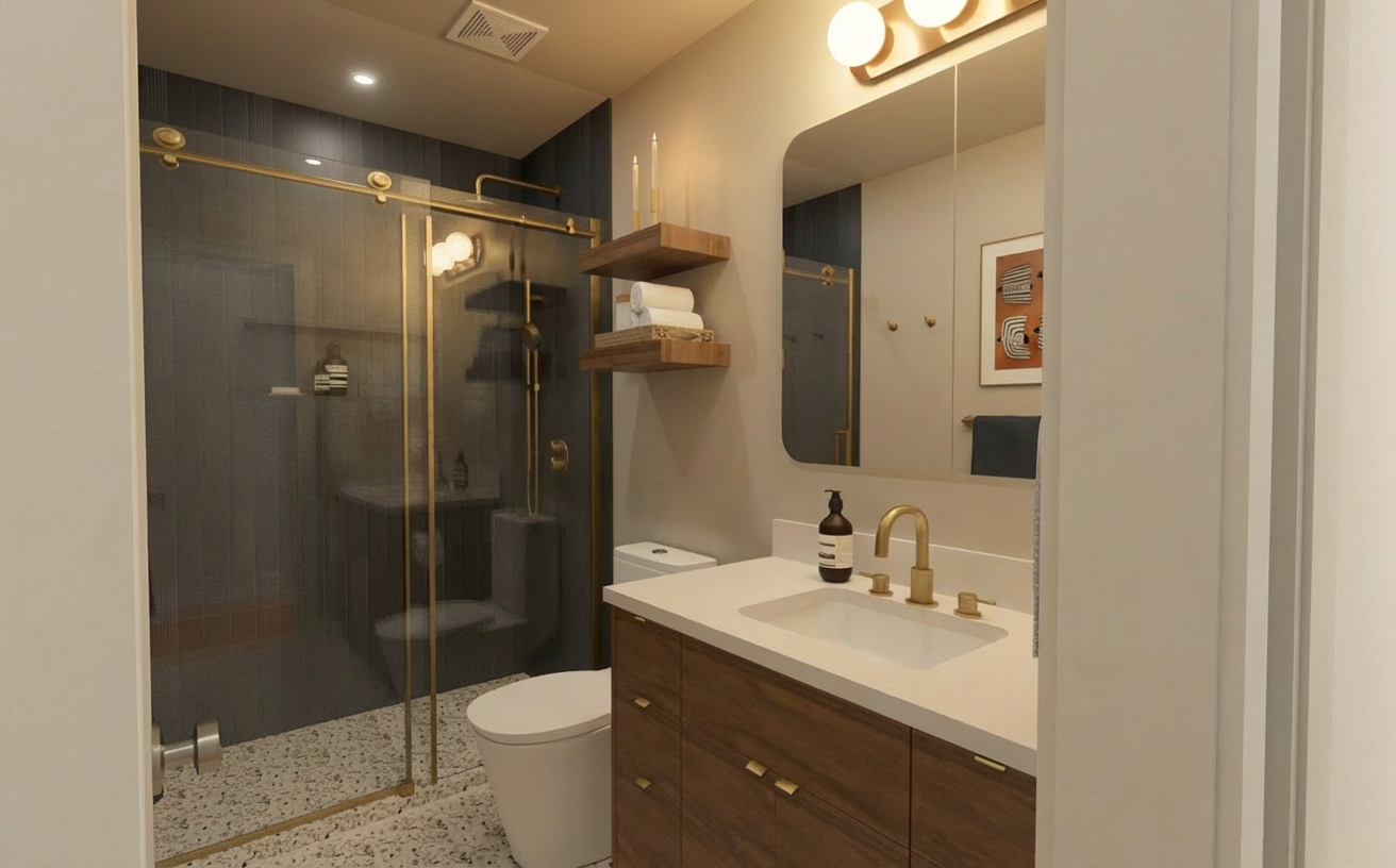 enhance the existing image of a school interior corridor do not add remove or modify architectural elements furniture or people preserve the original composition and geometry exactly improve lighting quality stronger natural daylight entering through windows and lattice enhanced global illumination realistic light bounces and higher dynamic range emphasize the existing light and shadow patterns created by the lattice making them clearer and more defined but still natural increase overall brightness while keeping highlights controlled no overexposure soft realistic shadows subtle volumetric light and improved contrast refine materials and textures for realism pbr look enhance reflections slightly on the floor without exaggeration maintain a clean natural architectural visualization style photorealistic render enhancement balanced exposure no new objects no people added no changes in layout a ade adolescentes entrando y saliendo de clase