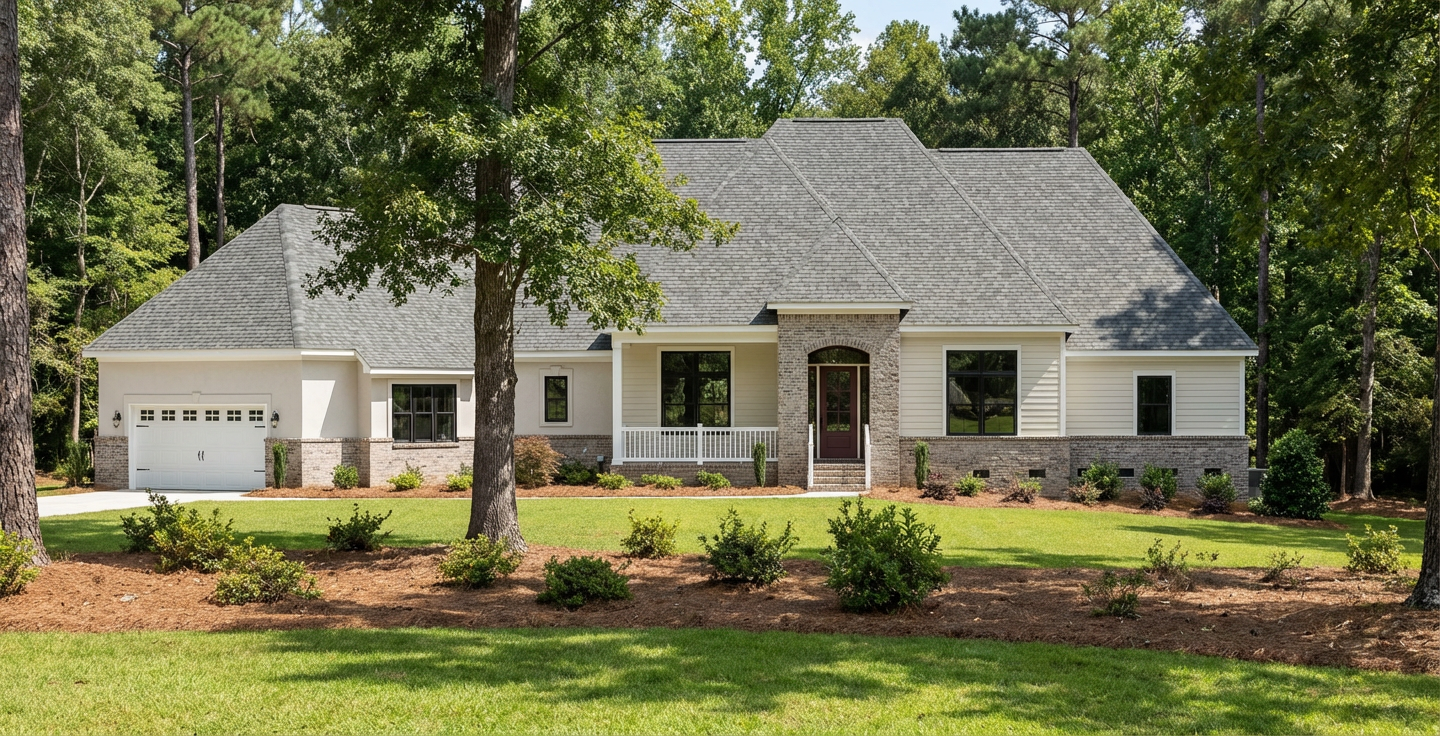 beautifully render a modern open floor plan with abundant natural light streaming through large windows utilize a warm inviting color palette with rich honey toned wooden floors and soft beige walls highlight a central kitchen island adorned in elegant white marble with subtle gray veining incorporate light wood bar stools for seating around the island create an atmosphere of serene elegance and cozy sophistication enhanced by soft natural light casting gentle shadows across the space increase size of range to 48 inches wide extend upper cabinets to ceiling with glass doors in top section change refrigerator to panel style matching adjacent cabinets
