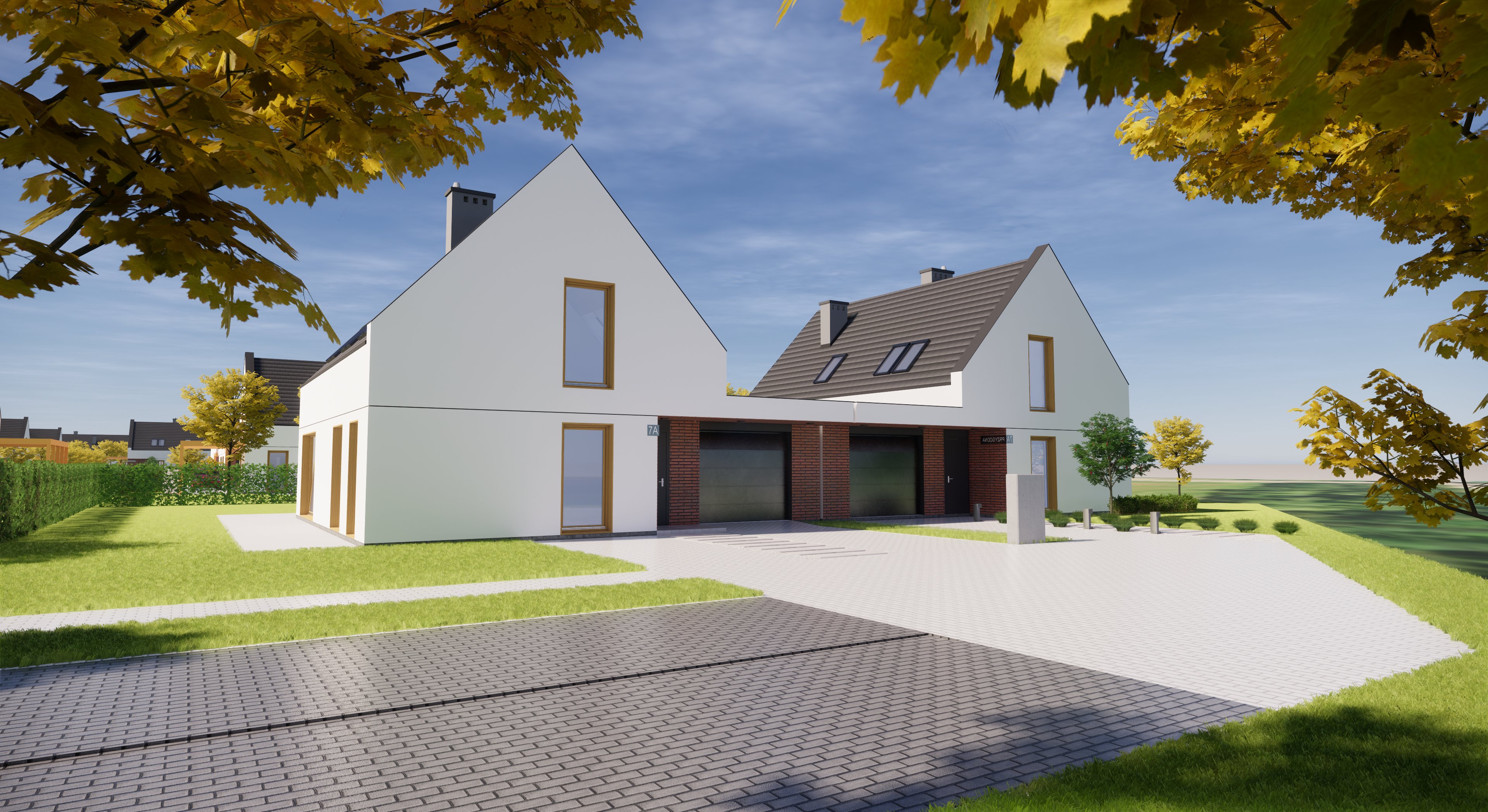 using maintain colors precision mode enhance this architectural site visualization while keeping all original building shapes massing floor divisions podium garages roads paths and site layout exactly unchanged in position scale and proportions subtly upgrade to hyper photorealistic quality by adding intricate details to every surface improve facade materials with realistic textures like subtle plaster grain concrete micro cracks and metal sheen enhance glass windows with accurate reflections of surroundings sky and vegetation plus visible soft interiors behind windows showing modern apartment furnishings warm lighting curtains and furniture silhouettes for lived in residential feel integrate lush detailed greenery scaled perfectly to buildings medium trees with full canopies along roads layered shrubs at bases dense textured lawns and groundcover plus extended vegetation into flat surrounding context for immersive depth boost overall scene realism with natural atmospheric effects soft directional daylight shadows subtle lens flare depth of field haze in distance realistic sky with clouds and lifelike environmental interactions like leaves on paths or dew on grass preserve exact composition camera angle and color palette only elevating material fidelity interior glimpses reflections vegetation density and photorealistic rendering for professional presentation