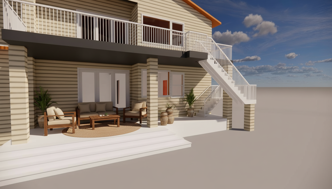 this is a funeral home in greenville sc make a realistic render the walls should be reddish brown brick the roof should be black shingles the trim should be painted white the front of the building should have landscaping found in south carolina there should be a drive way from garage door to the right of the building the chimney should be the same brick with the cap being a dark metal standing seam garage door should be white