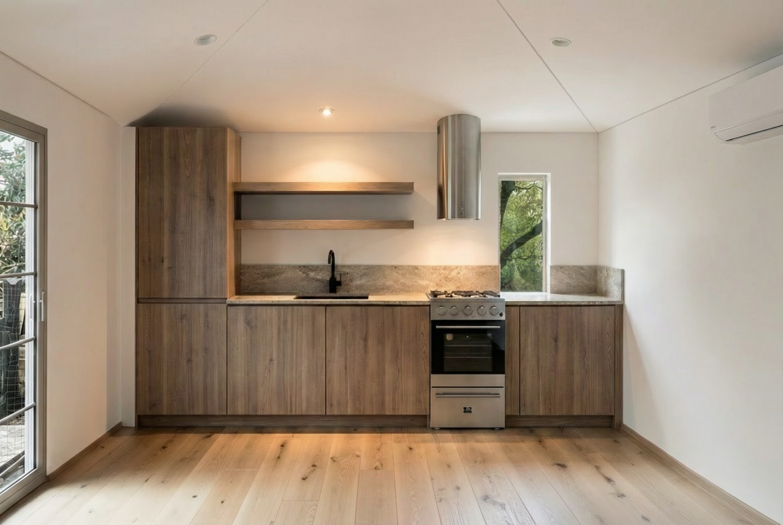 replace the two ceiling recessed lights with adjustable matte black thin cylinder spot lights but leave the recessed light over the sink as is