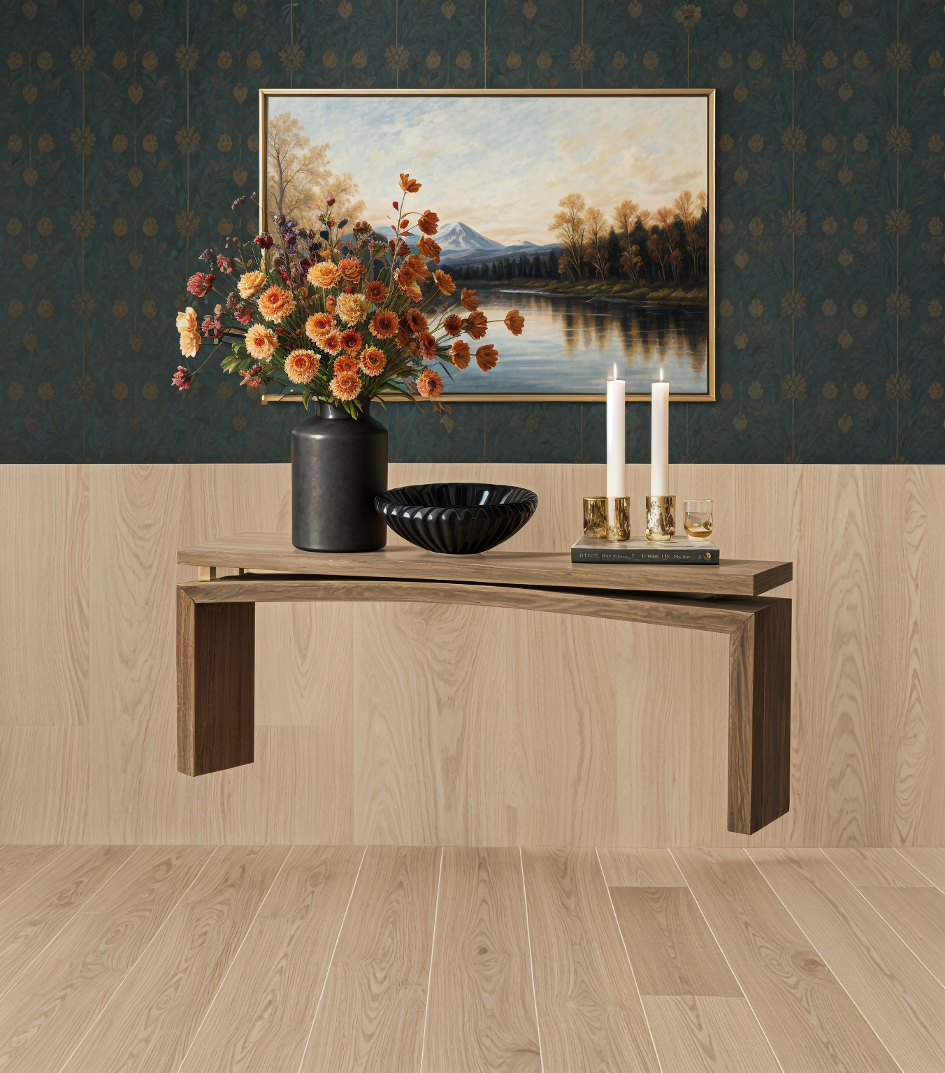 medium gray wood shake siding dark gray shingle roof modern landscape in front of house dark window trim and mullions modern stone base on house cloudy afternoon sky evergreen tree forest background brighter light from windows and doors overall brighter scene with more ambient light add glass to doors with mullions that match windows no driveway in front make windows brighter
