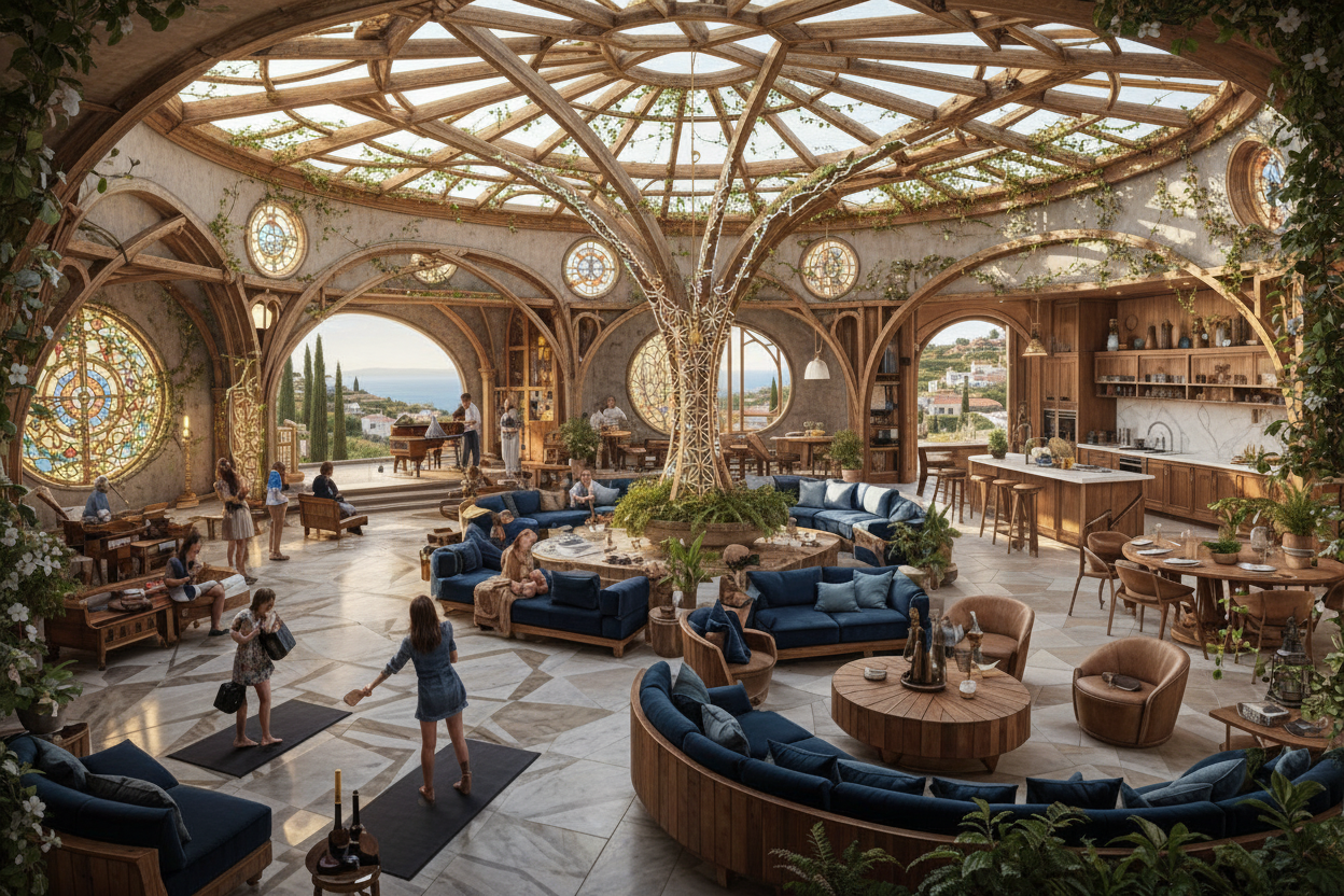 add in a few people without distracting from the given rendering do not alter anything else about this rendering