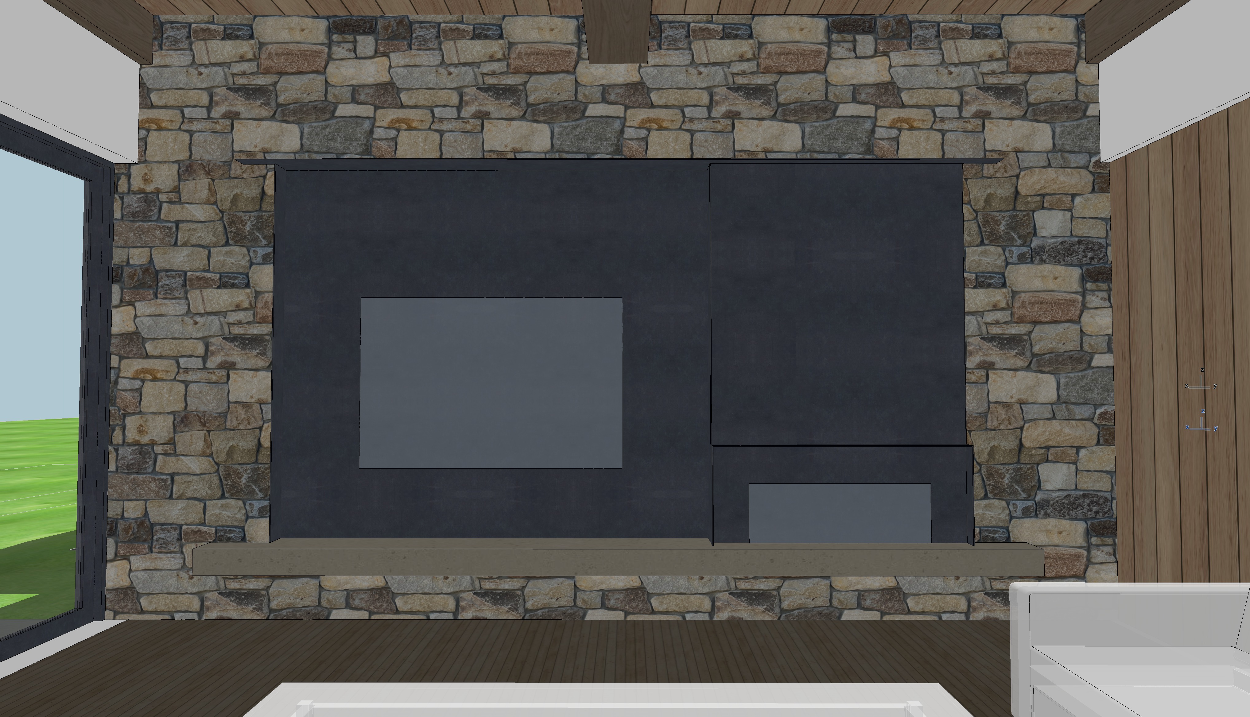 sheetrock walls wood ceiling plate steel tv niche fireplace surround fire in fireplace