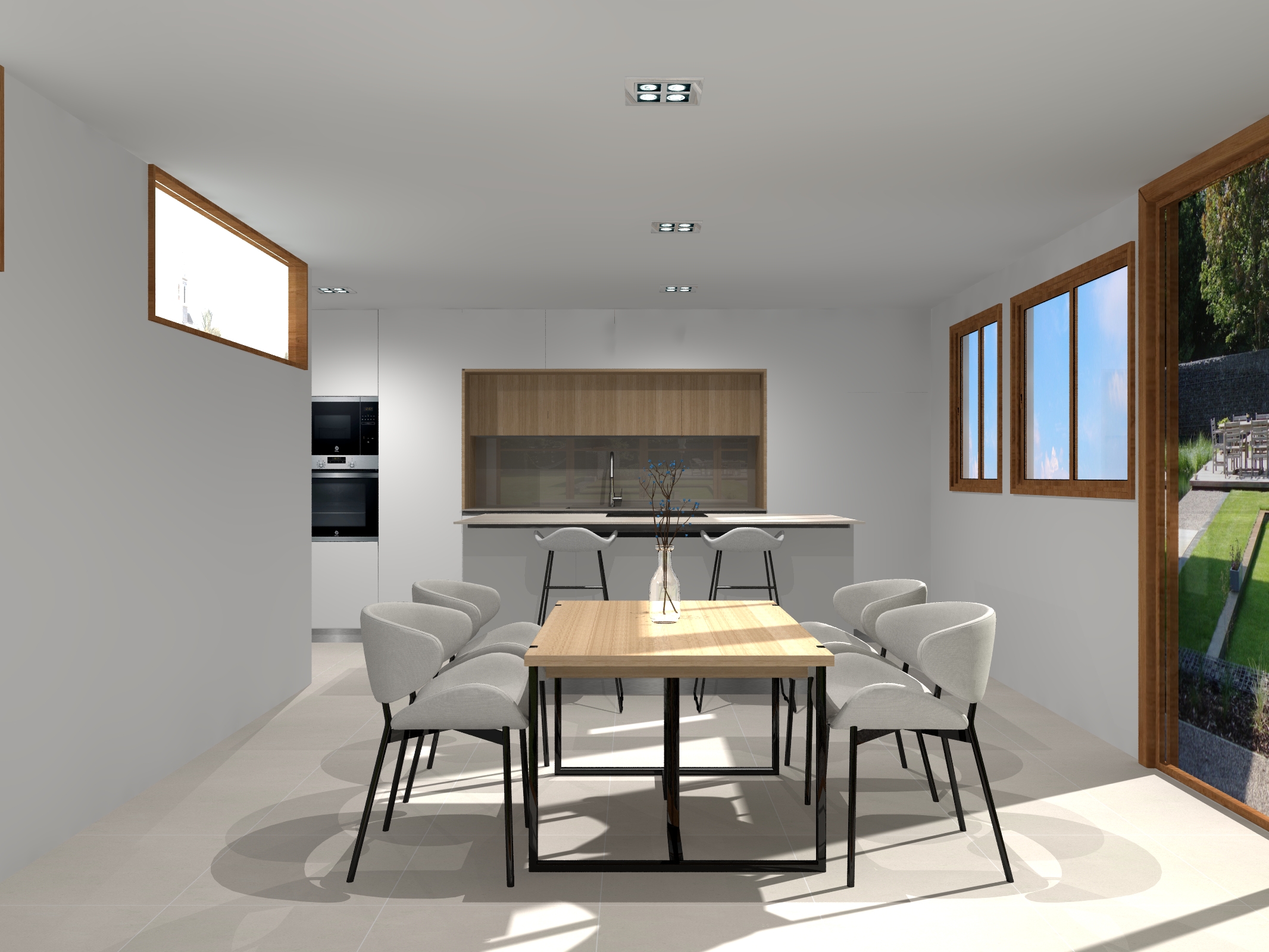behind just only the faucet there is a wall made of the same material as the kitchen countertop the material is bottega caliza by xtone