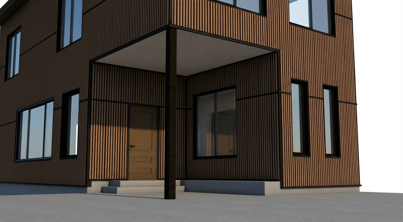 replace the fluted glass on the left wall with perforated metal brown panel do not apply this change to the door and walls