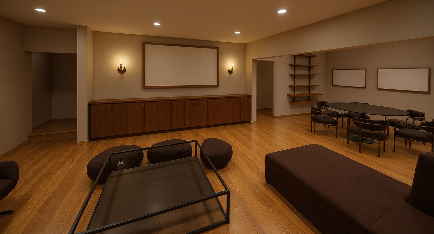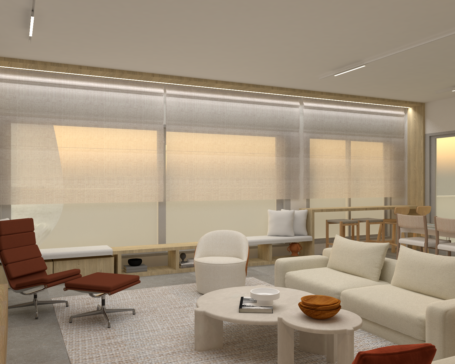 living room in scandinavian style and far sea views soft and bright morning sun light grey tiled floor