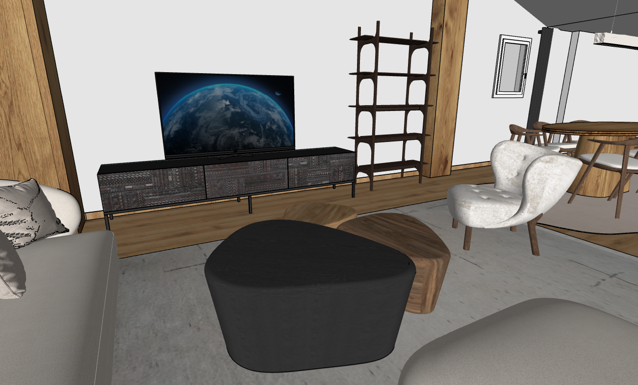 agrega una cortina de piso a techo enfrente de la ventana de la imagen en tonos muy claros con caida libre y natural elimina las lineas negras del cojin