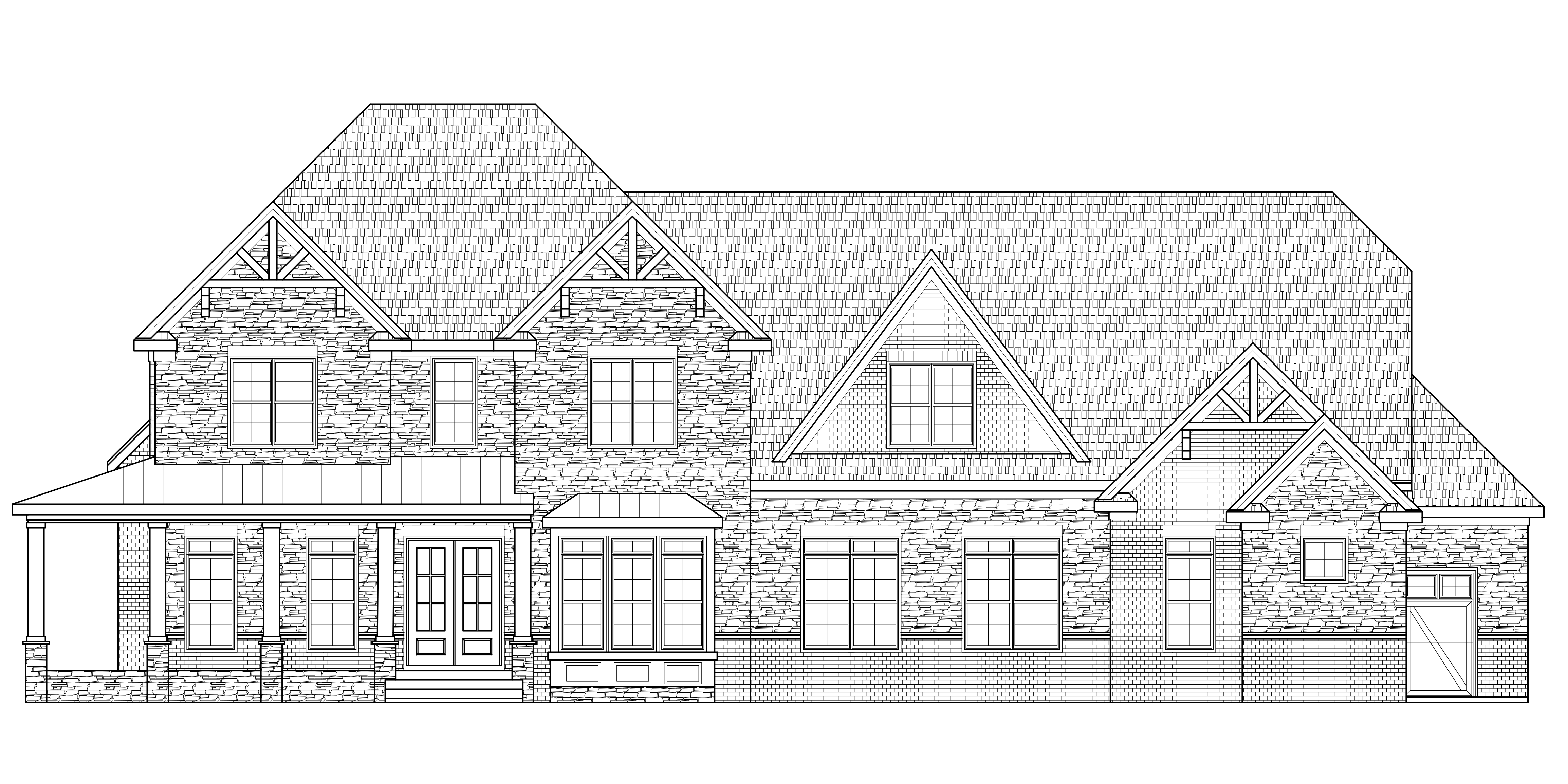 exterior shot brown shingle roof bronze metal roof light hackett stone with white mortar and a white brick water table bronze windows wood gable brackets and wood doors