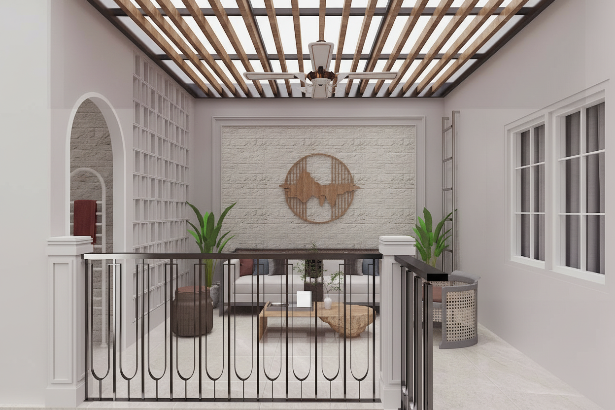 respecter totalement la g om trie et les couleurs de l image d origine les bandes led du plafond sont clair es le sol a deux couleur de bois diff rent respecter comme le mod le le plus fonc en bande centrale les montants des cloisons sont blanc les trois cloisons pleines sont gris clair mat