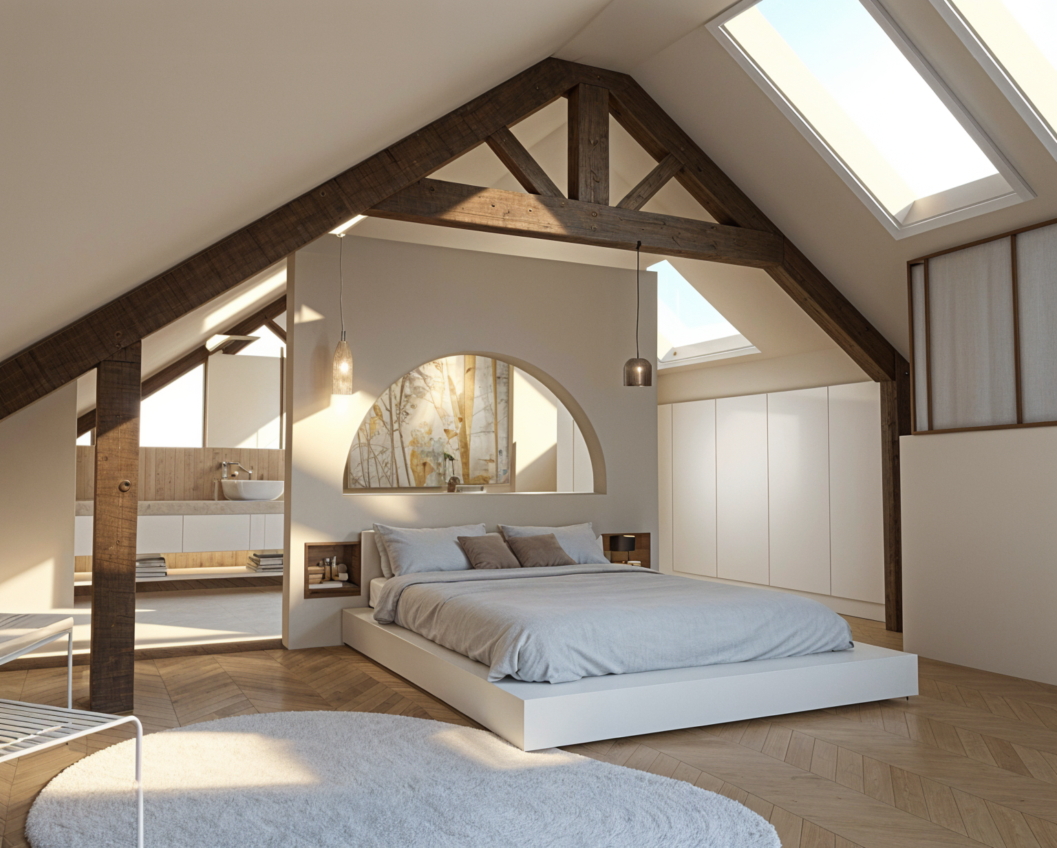 this fireplace repositioning is critical and must be clearly readable in the final image the shift must be approximately 40 cm forward into the space not symbolic or minimal but visibly detached from the staircase volume