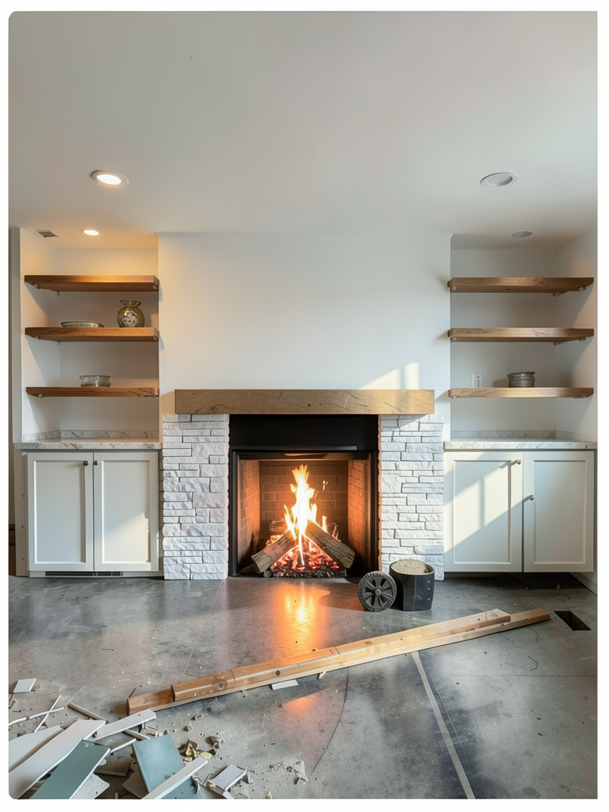 put white shiplap above the mantle also get rid of all the junk on the floor and replace it with a medium brown wood flooring