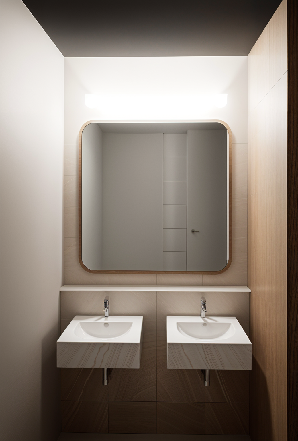 make it like urban university campus lighting to be enhanced interior daylight outside add trees and students where possible canteen at ground level right side