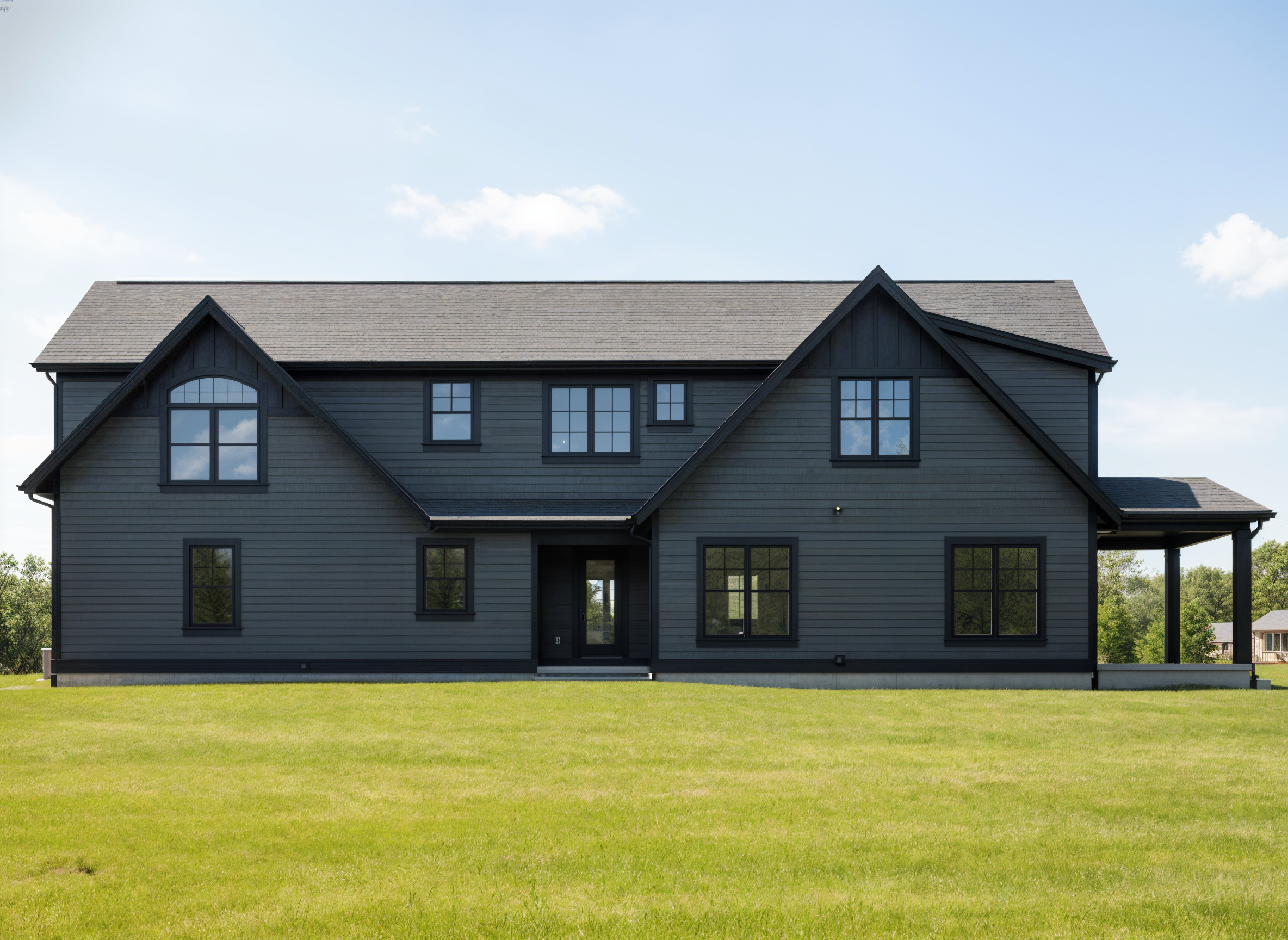 dark grey horizontal siding not black black trim black roof remove the lower right window
