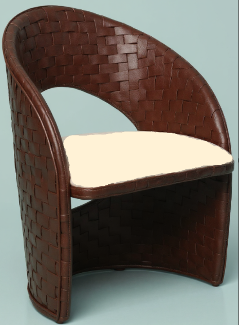 leather weaving in dark brown combination upholstered white fabric seat smooth finish