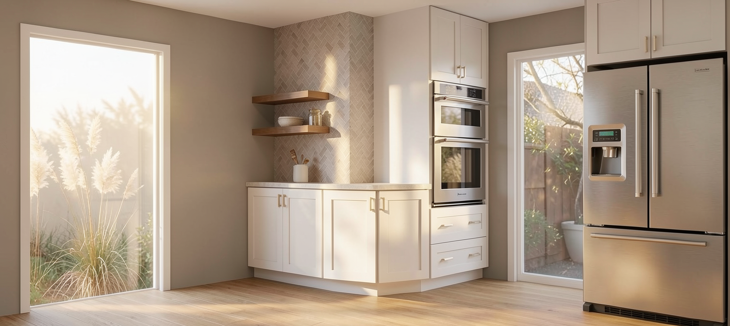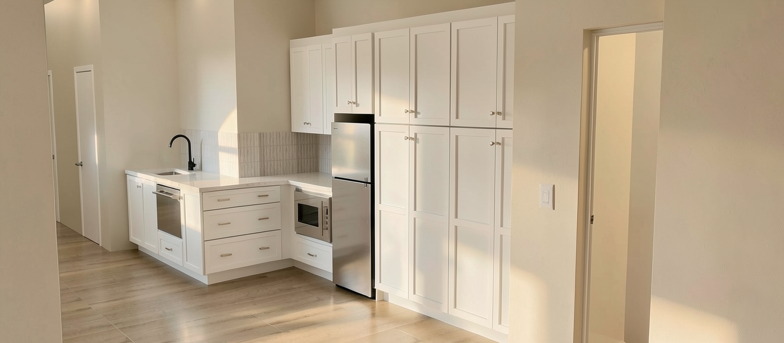 make super photorealistic with textures stainless steel counter on the bottom left table top to be white with black border