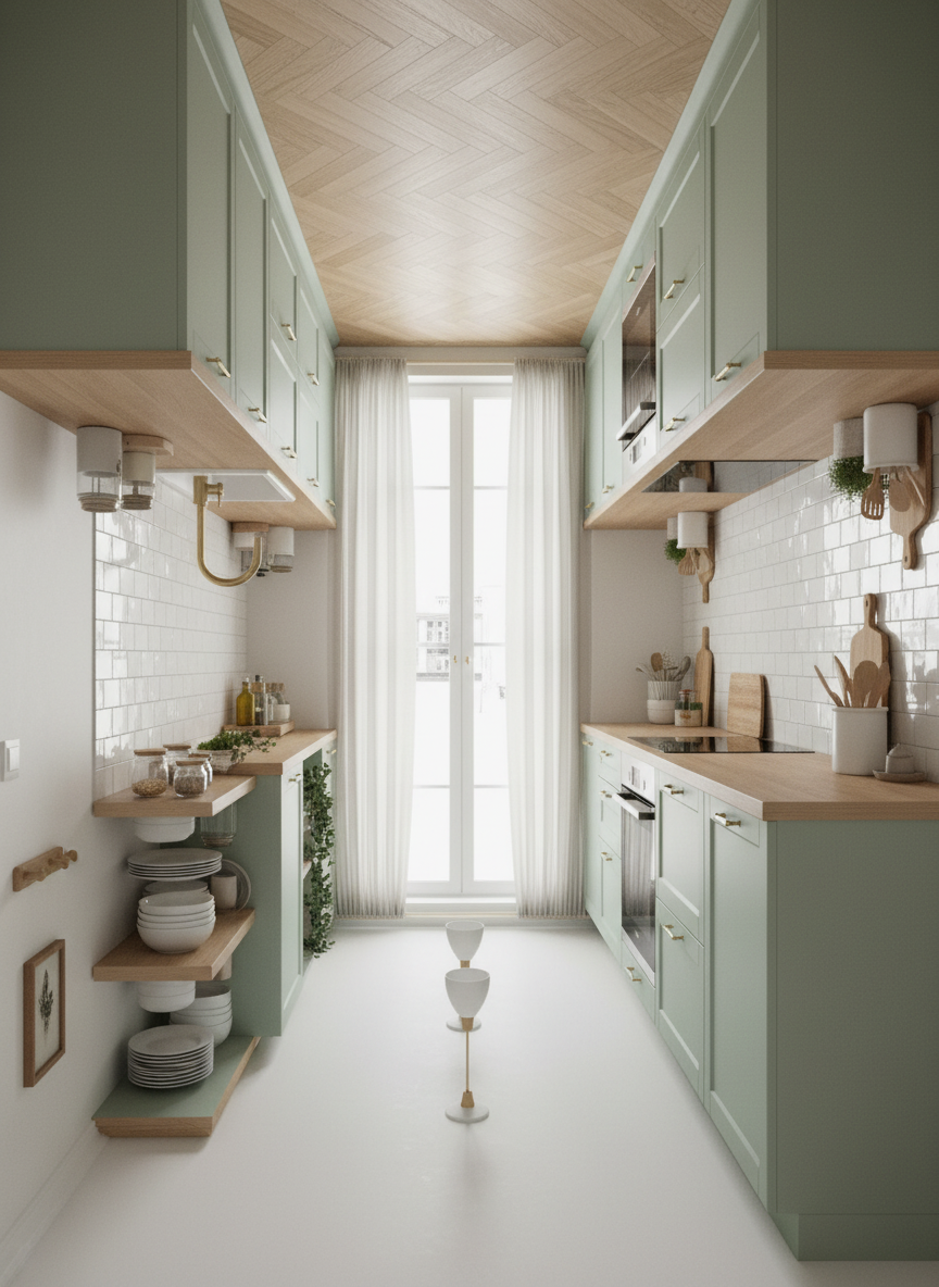 render this picture with calacatta prado quartz on the counter tops and on the backsplash show a white 12 x 24 light grey tile floor add under cabinet lighting change the cabinet pull hardware to gold