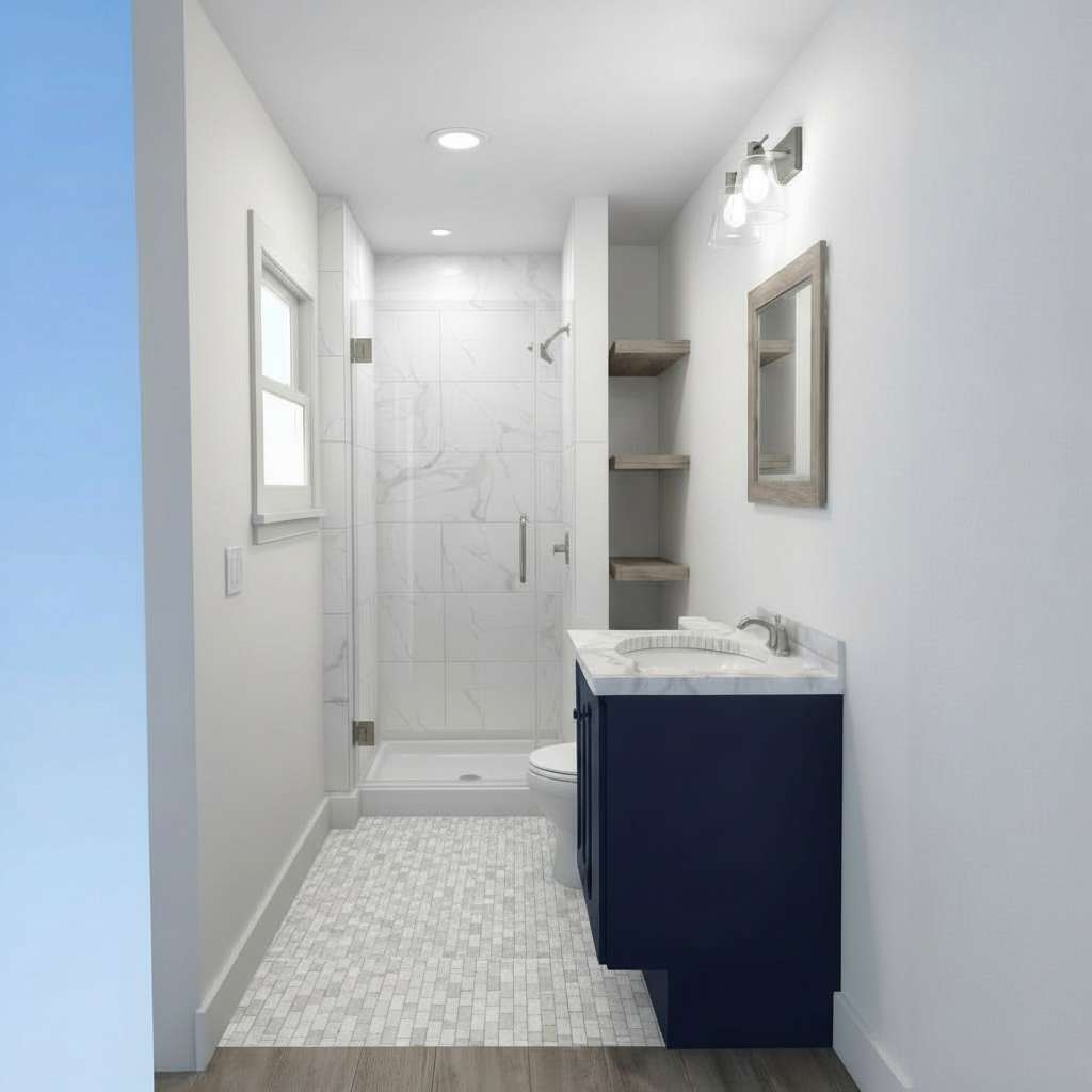 strictly preserve exact original architecture structure geometry proportions layout perspective all protrusions cutouts balconies volumes no design changes shapes or angles detail faithful overhangs and recesses continuous vertical wood lattice facade warm planks natural grain everywhere including white areas under overhanging parts make them matching wood surrounding simple buildings trees grass blue sky daylight high res photorealistic exterior architectural viz use input as strict blueprint improve only materials lighting details