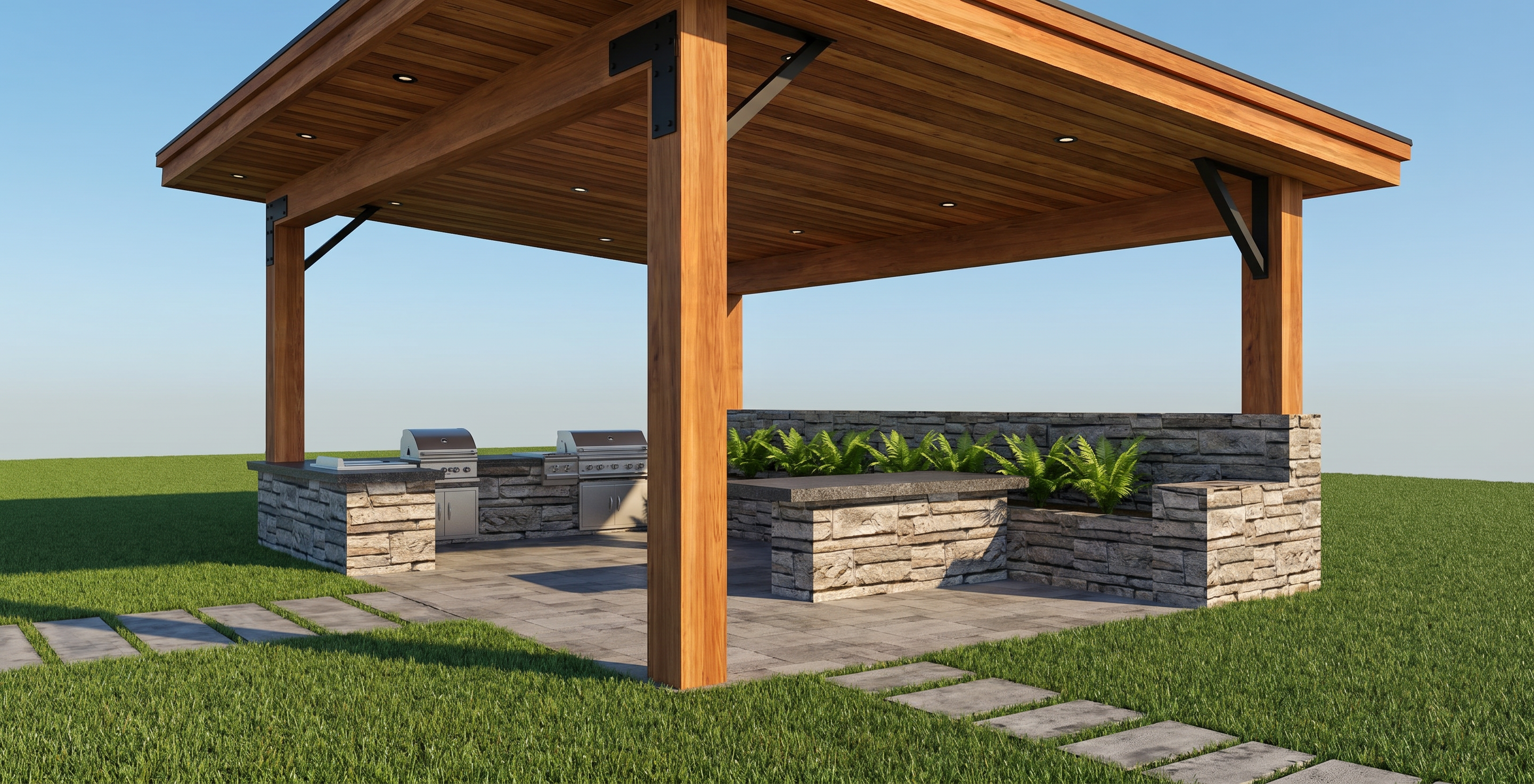 international style exterior shot a verandah in backyard with extra columns and extended roof the side wall are fitted with two third high glazing on side wall where the front is not enclosed architecture