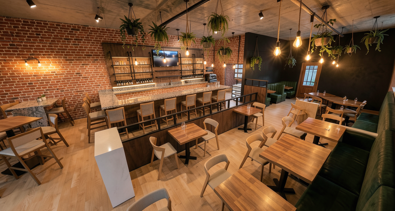 modern bbq beer hall restaurant with young professionals and families