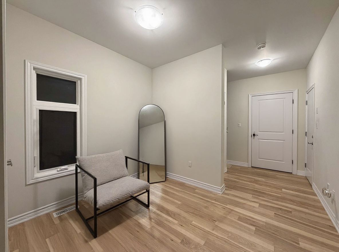 library on the left side keep the hallway empty keep the window in place add a workdesk too