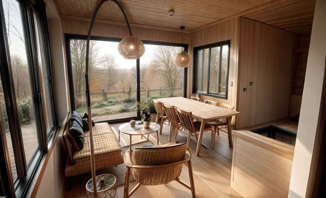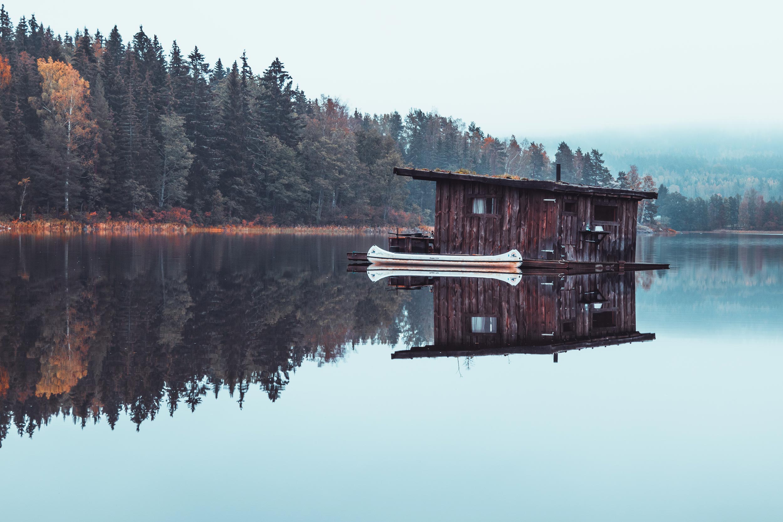 exterior shot scandinavian wood boathouse on water