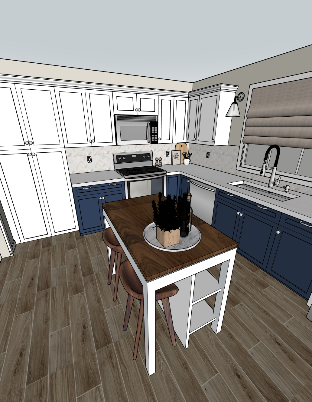 create a photorealistic image from my 3d sketchup model add a ceiling with recessed lighting