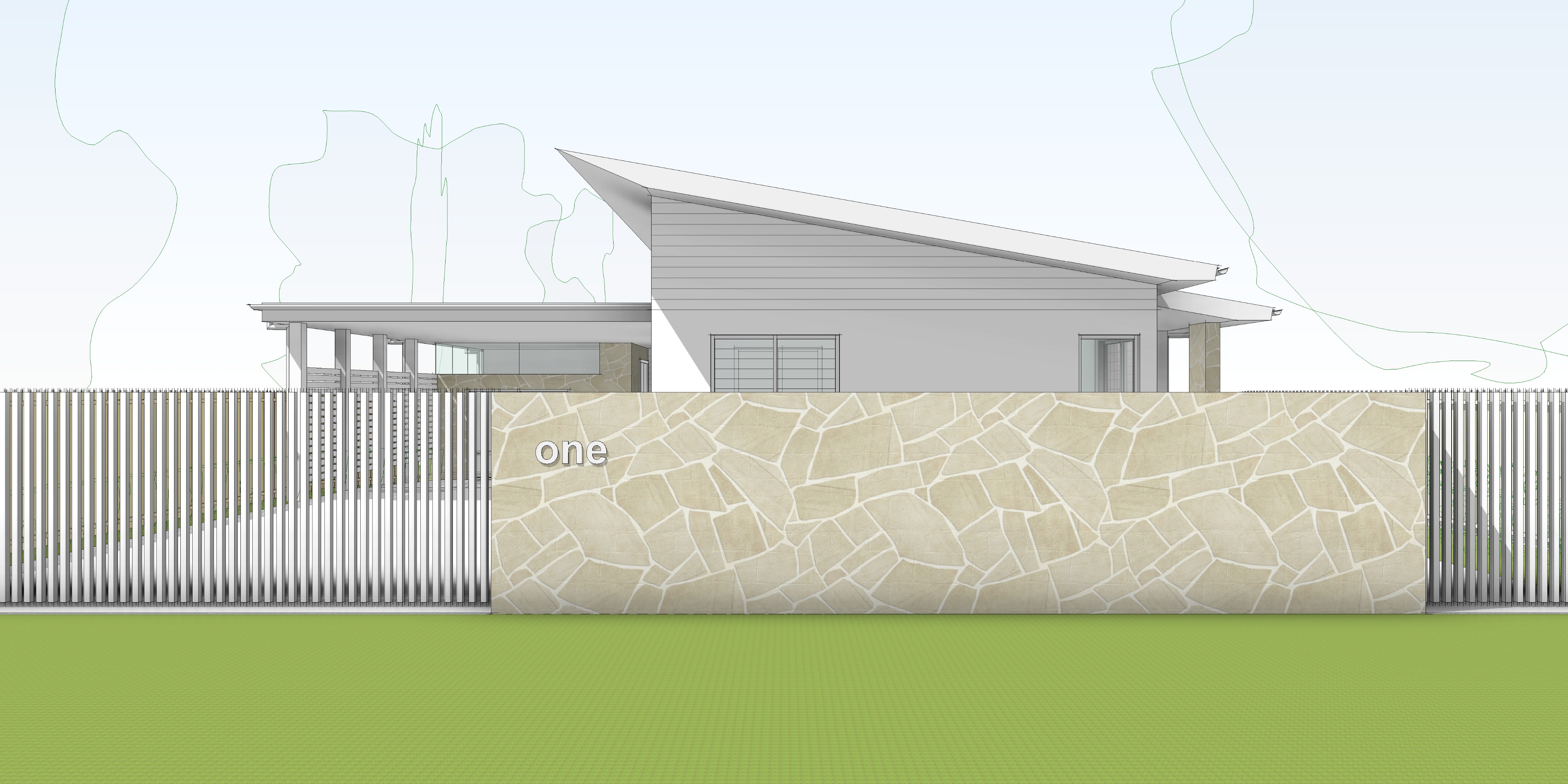 render a photorealistic 3d perspective of this house in erina reference the current material style just enhance them white metal roof linea fc siding concrete walls keep model geometry the same windows doors roof walls garage door pavement driveway make a lush vegetation that looks native to australia do not change the view only enhance the current materials and make the landscape nicer vegetation detailed textures in the grass and glass reflections and a vibrant clear sky with light atmospheric depth render in hyper realistic architectural visualization quality 8k resolution
